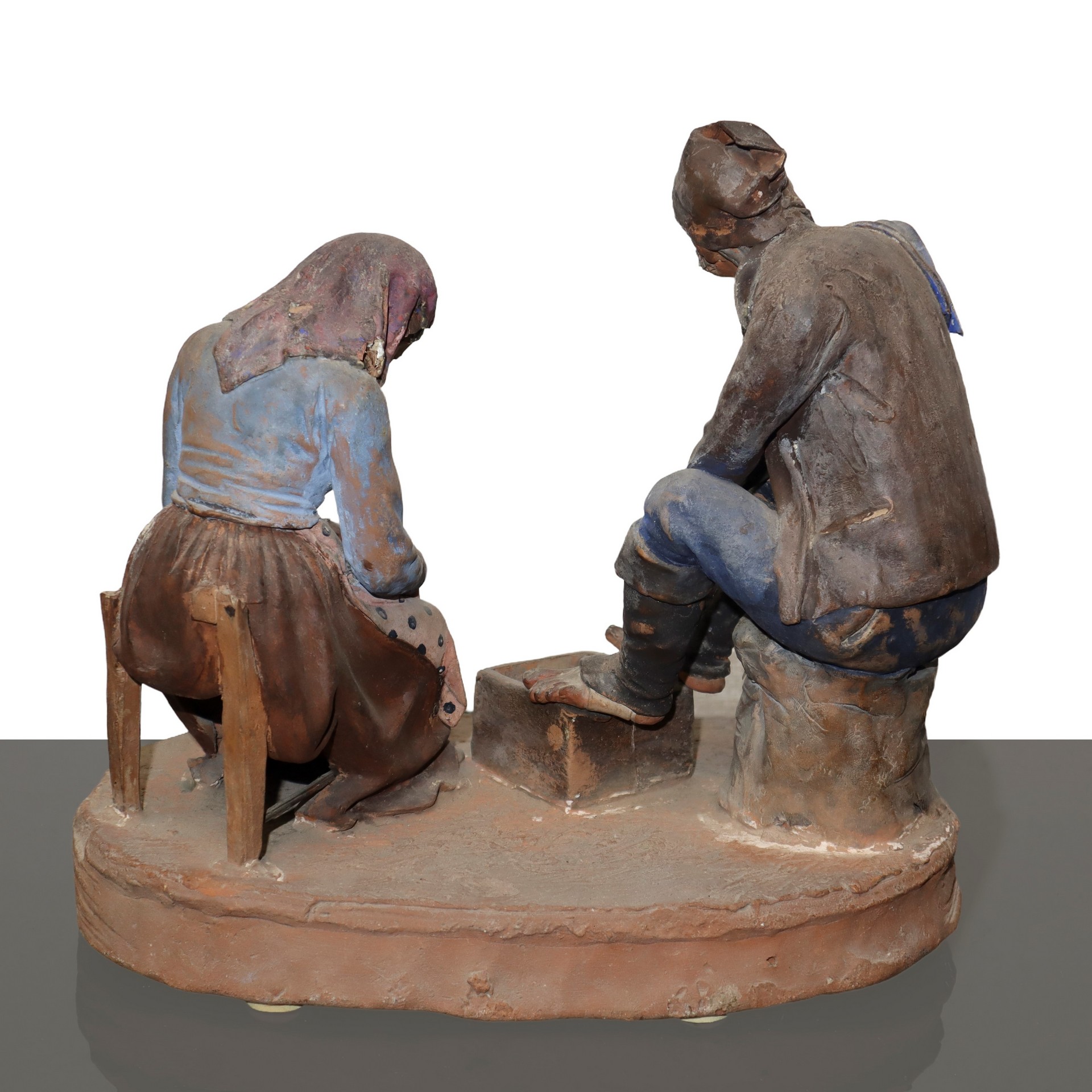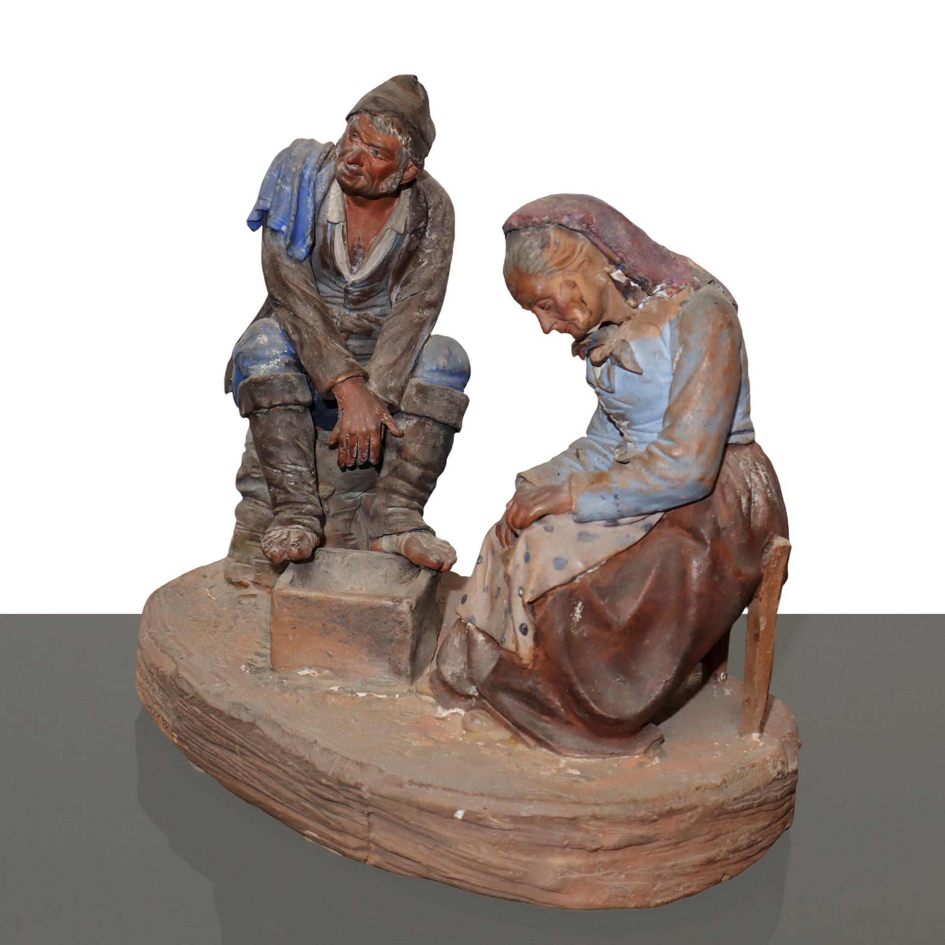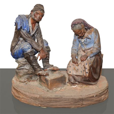 Bongiovanni Vaccaro (attribuito a) (Caltagirone 1807-Caltagirone 28 novembre 1889) - Coppia di figurine in terracotta policroma di Caltagirone. Anziani