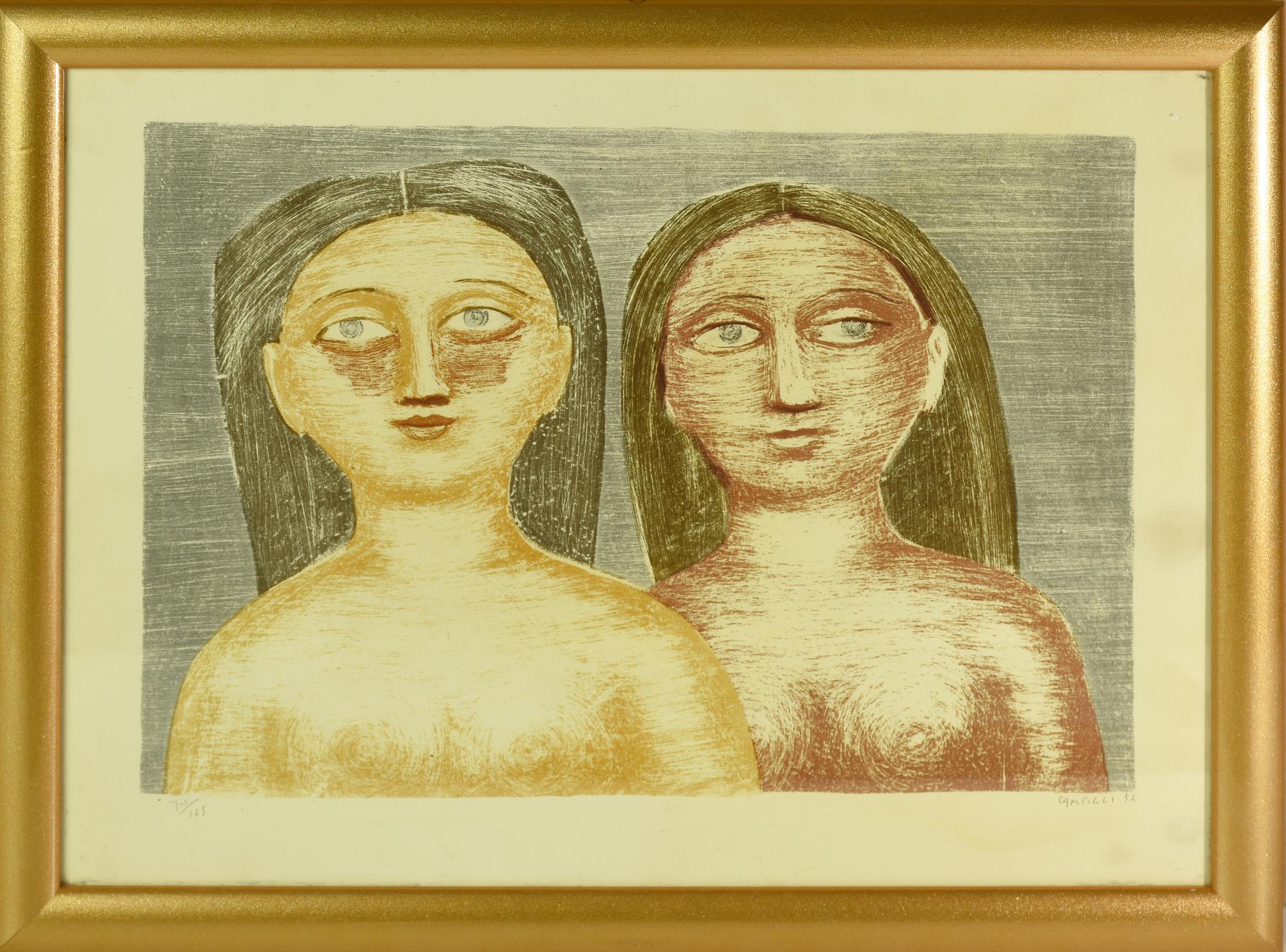 Massimo Campigli DUE FIGURE riproduzione fotolitografica su carta da...