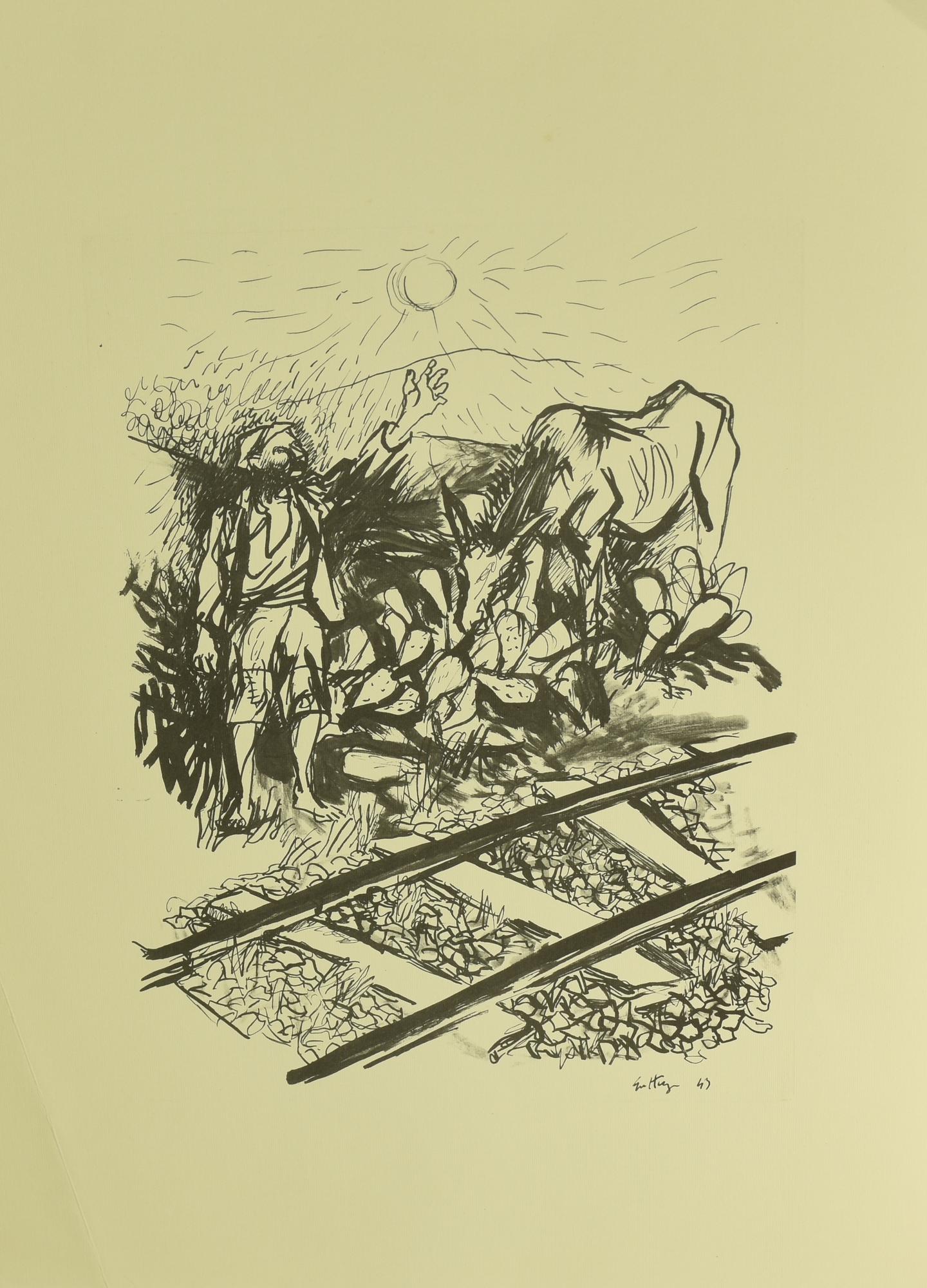 Renato Guttuso UOMO SULLE ROTAIE riproduzione fotolitografica su carta, cm...