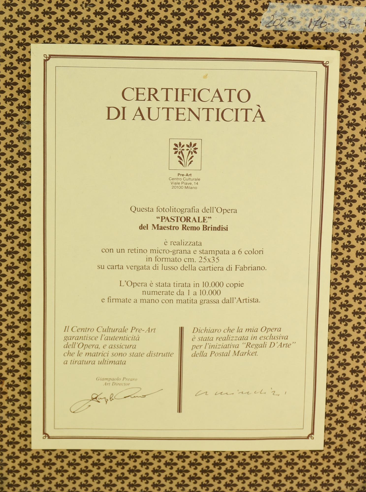 Lotto 16 | Remo Brindisi PASTORALE fotolitografia su carta, cm 35x25, esemplare x/10.000...
