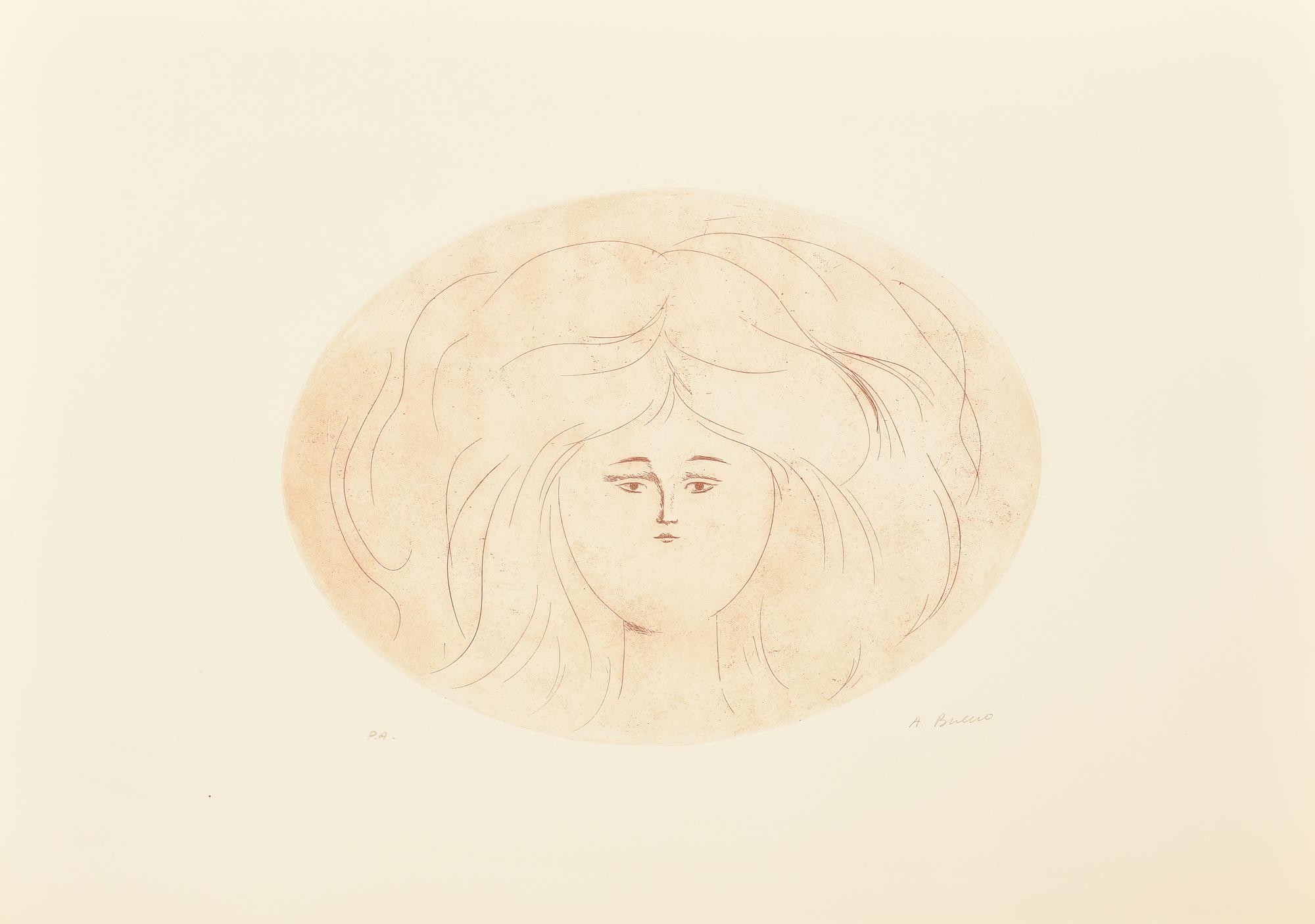Antonio Bueno RITRATTO SU SFONDO ROSSO incisione su carta, battuta cm 30x40,...