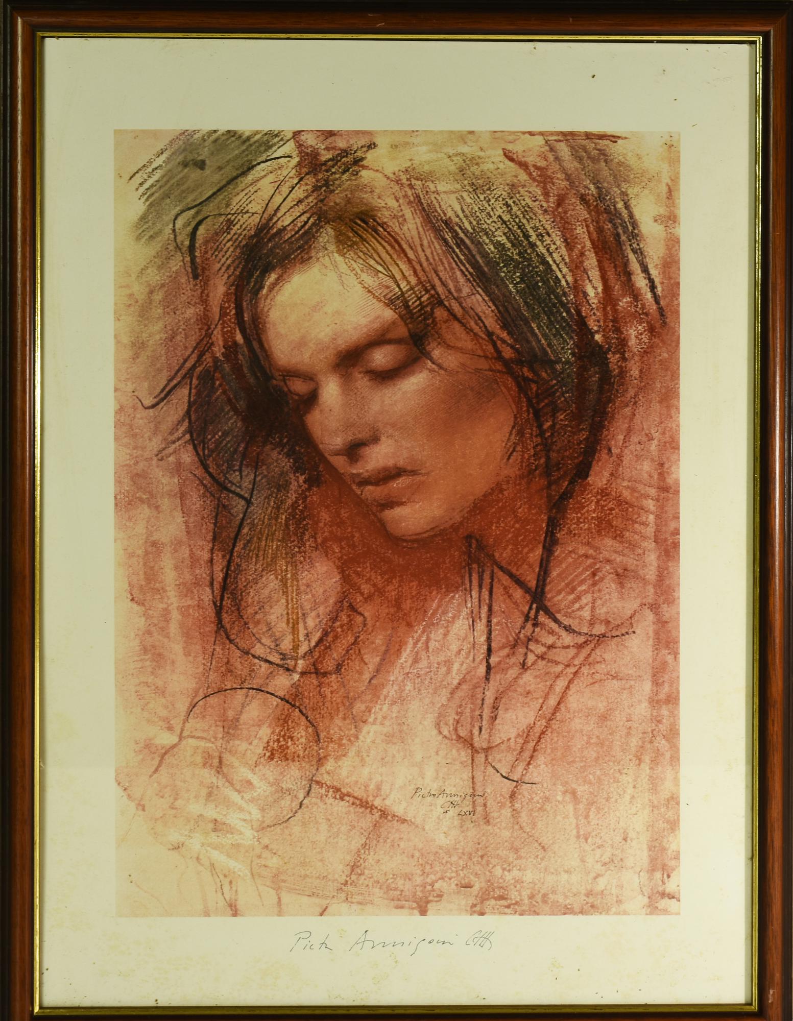 Pietro Annigoni RITRATTO DI DONNA fotolitografia su carta, cm 62x44 firma e...