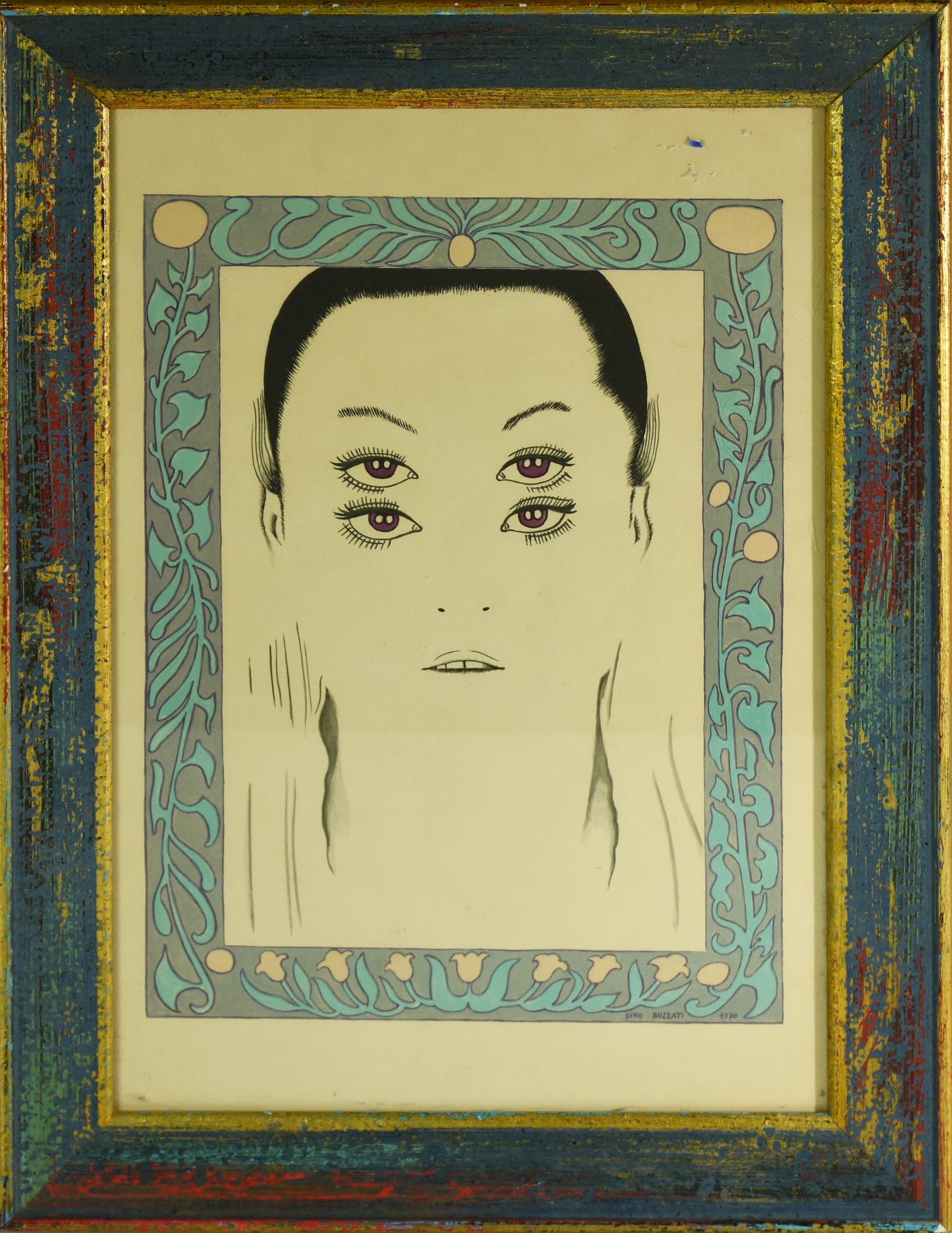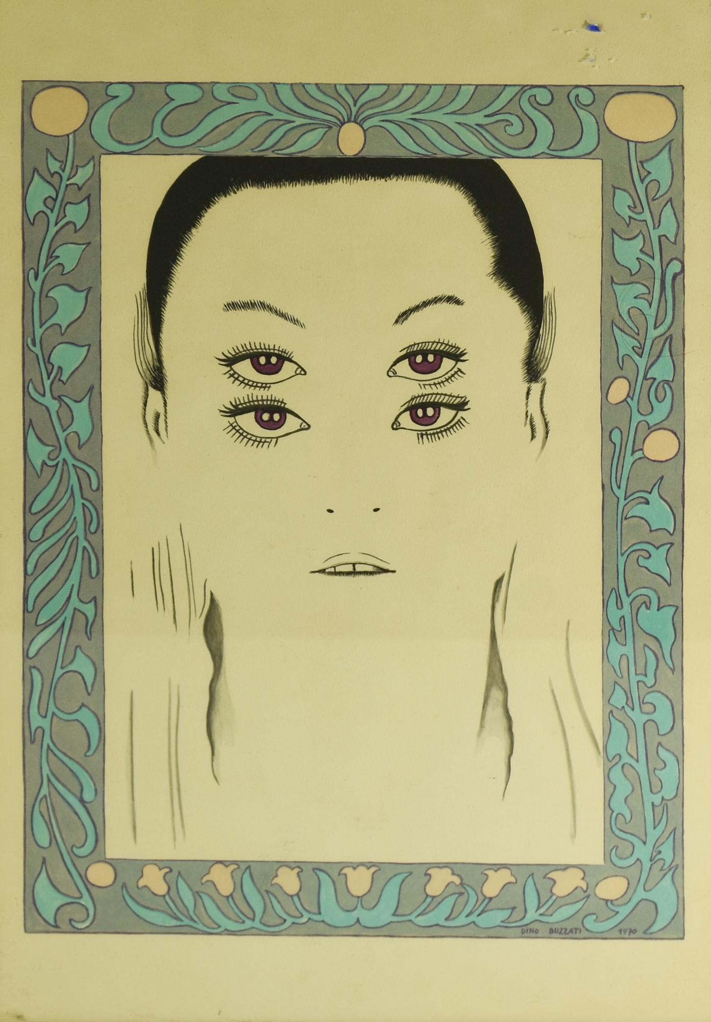 Dino Buzzati DUPLICE stampa fotolitografica su carta, cm 35x23 firma e data...
