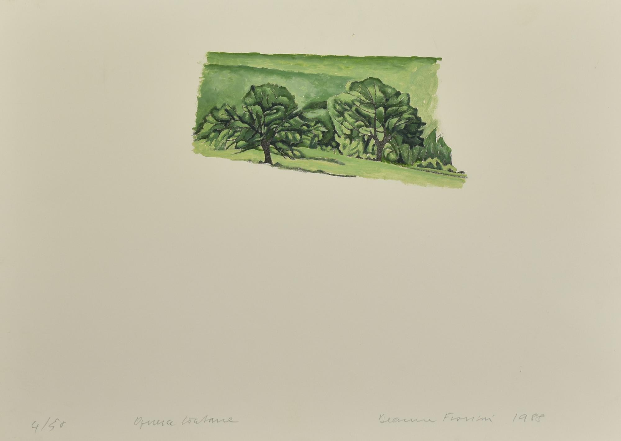 Fiorini ALBERI litografia su carta, cm 10x21, su foglio cm 35x49,5; es. 4/58...