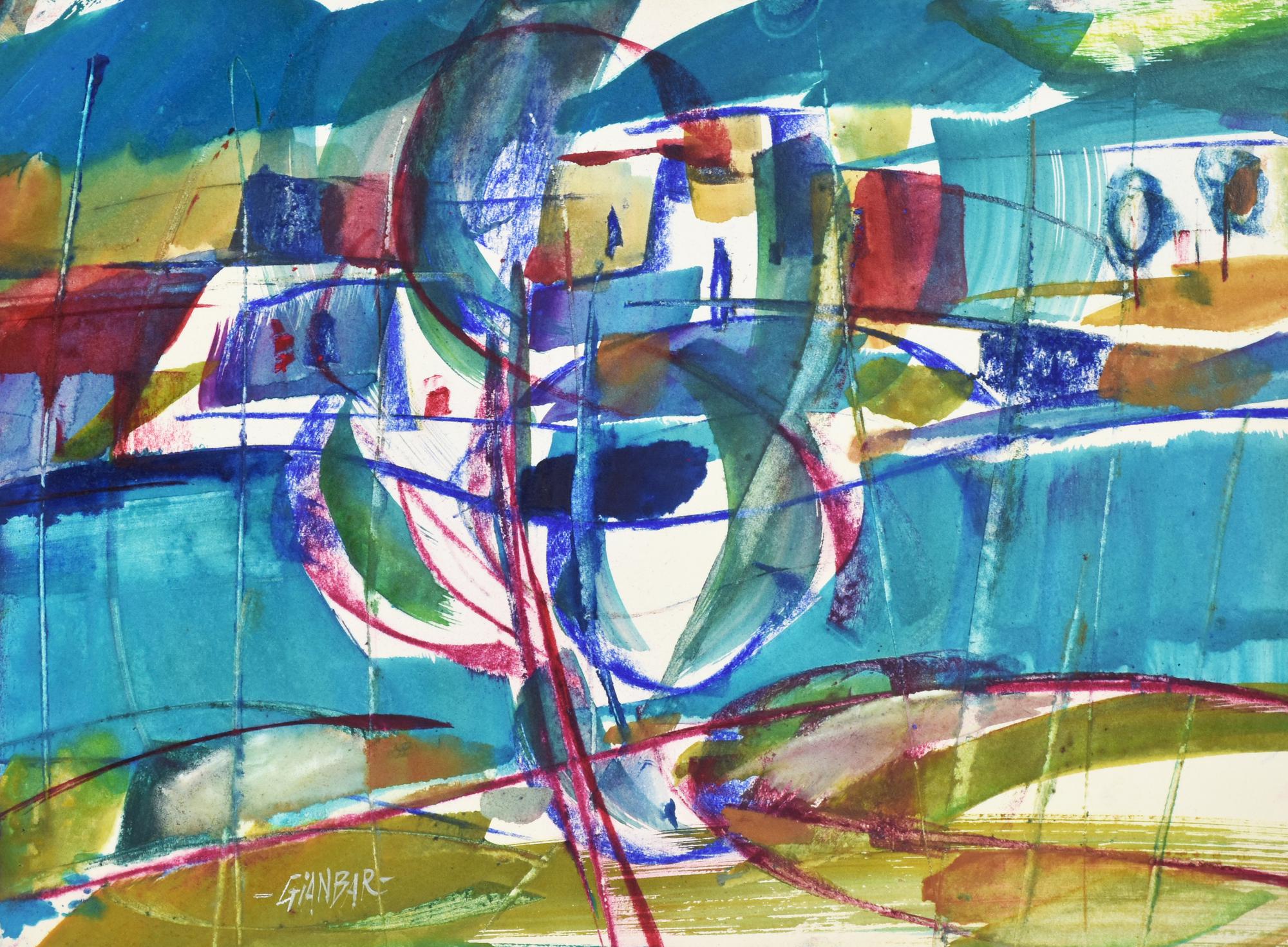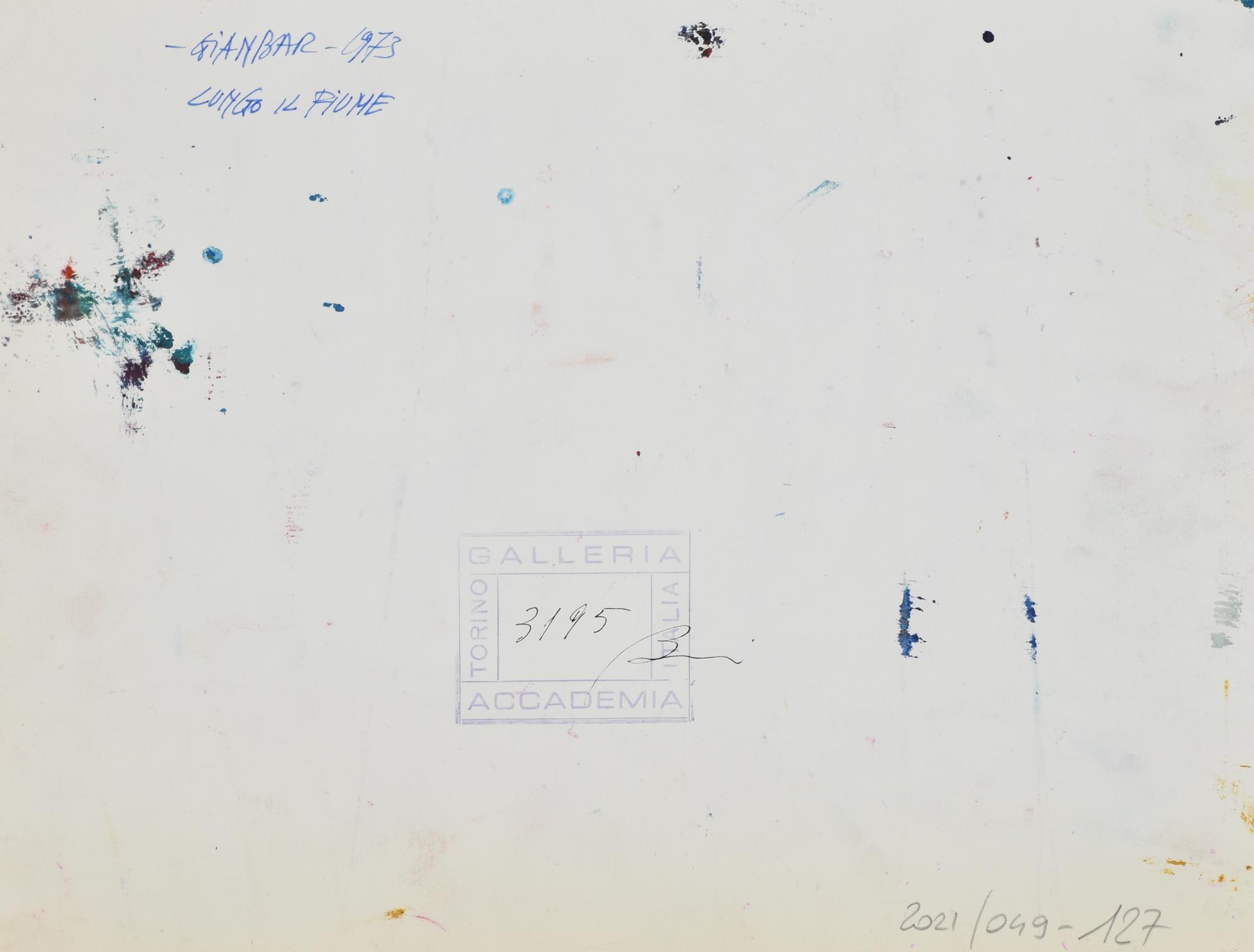 GIANBAR (Gianni Baretta) LUNGO IL FIUME tecnica mista su carta, cm 25x33...