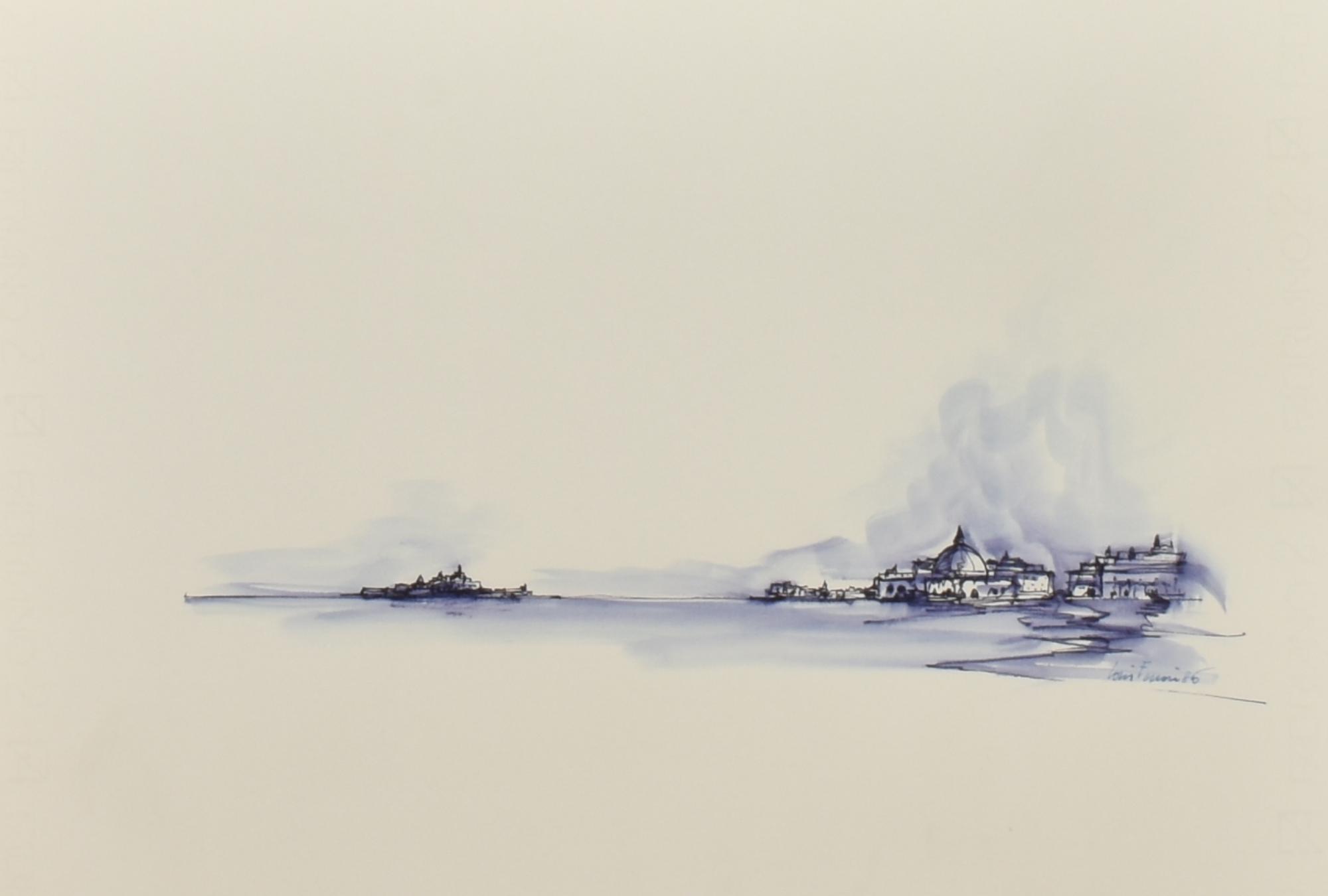 Loris Ferrari VEDUTA acquerello e china su carta, cm 33x48 firma e data...