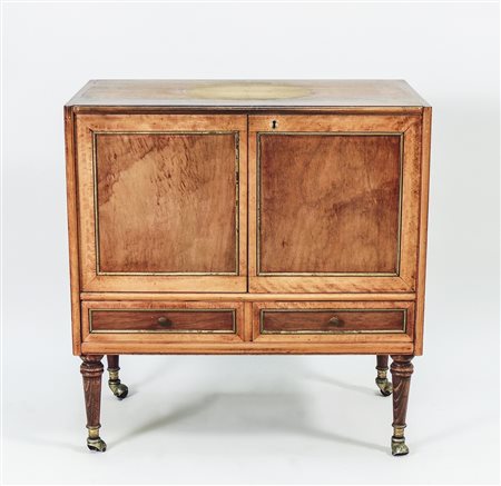 PICCOLO STIPO IN LEGNO TENERO - SMALL SOFTWOOD CABINET Anni Cinquanta - 50s fronte dritto a due sportelli e due mezzi cassetti sottostanti, gambe a faretra con rotelle, difetti h cm 77x73x43
