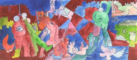 Ignoto SENZA TITOLO acquarello su carta, cm 20x45 sul retro: firma e data...