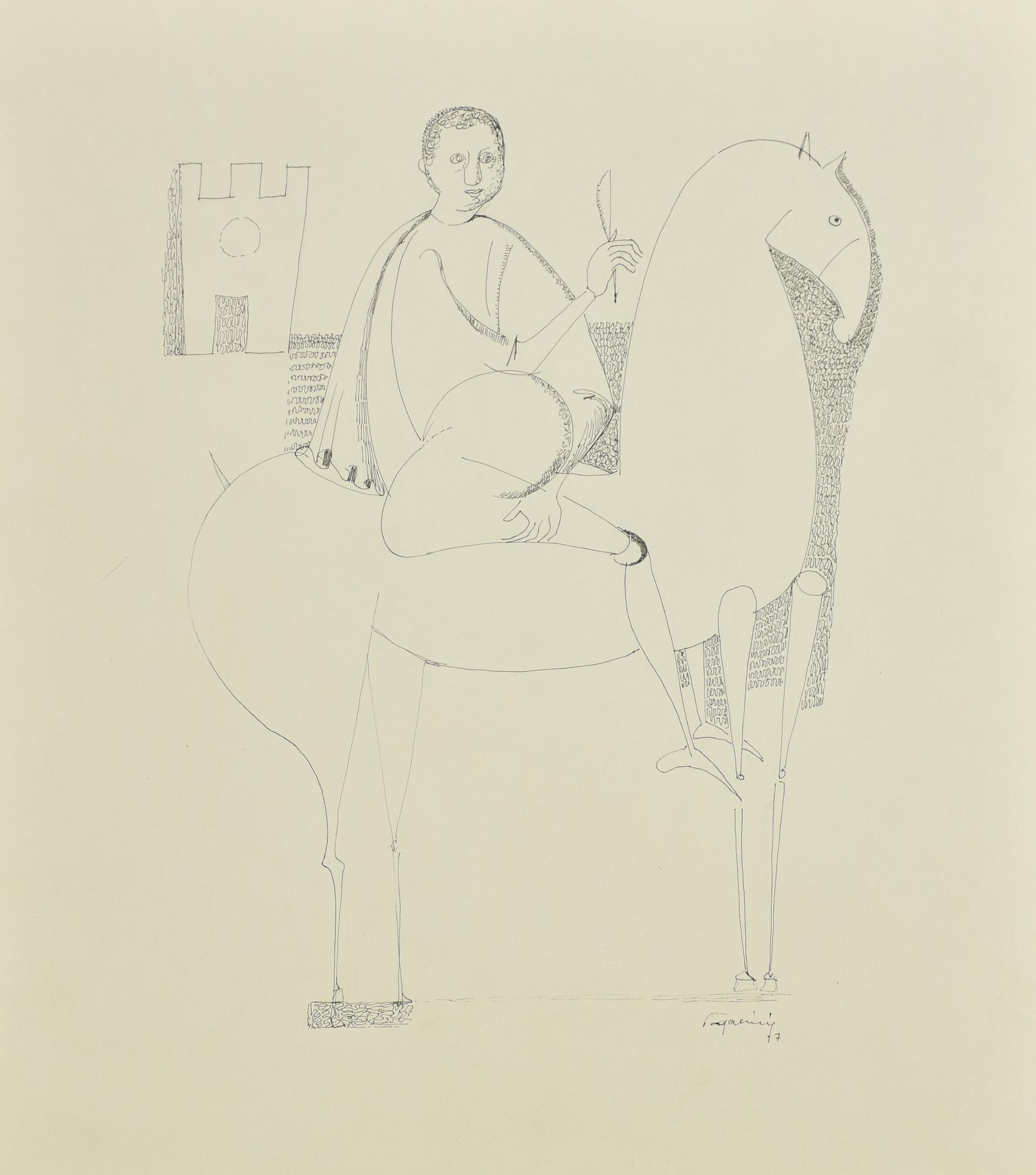 Ignoto UOMO A CAVALLO china su carta, cm 38x35 firma e data eseguita nel 1977