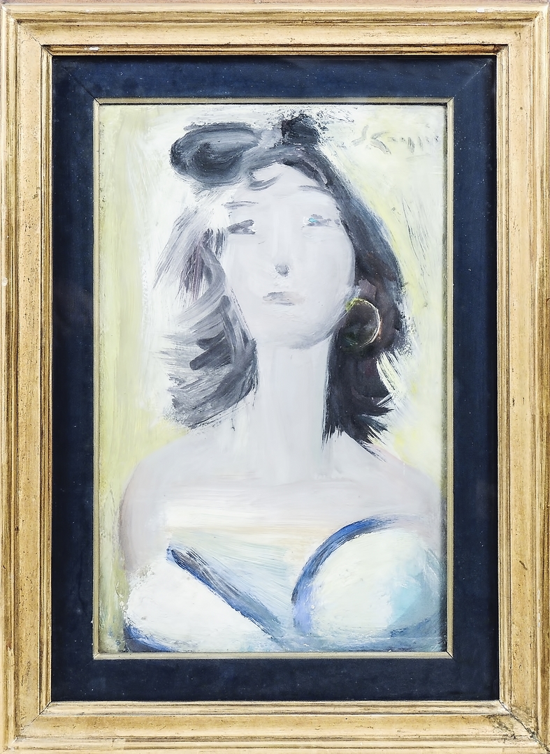 SPARTACO GREGGIO (1893-1979) Ritratto femminile - Female Portrait olio su cartoncino su tavoletta - oil on cardboard on panel, firmato in cornice cm 37x23