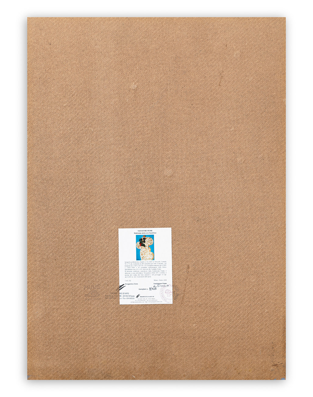 Certificato autenticità dalla Fondazione Fiume e rilasciato dall'Editore Prospettive d'Arte al retro con timbri della Fondazione Fiume e dell'Editore Prospettive d'Arte