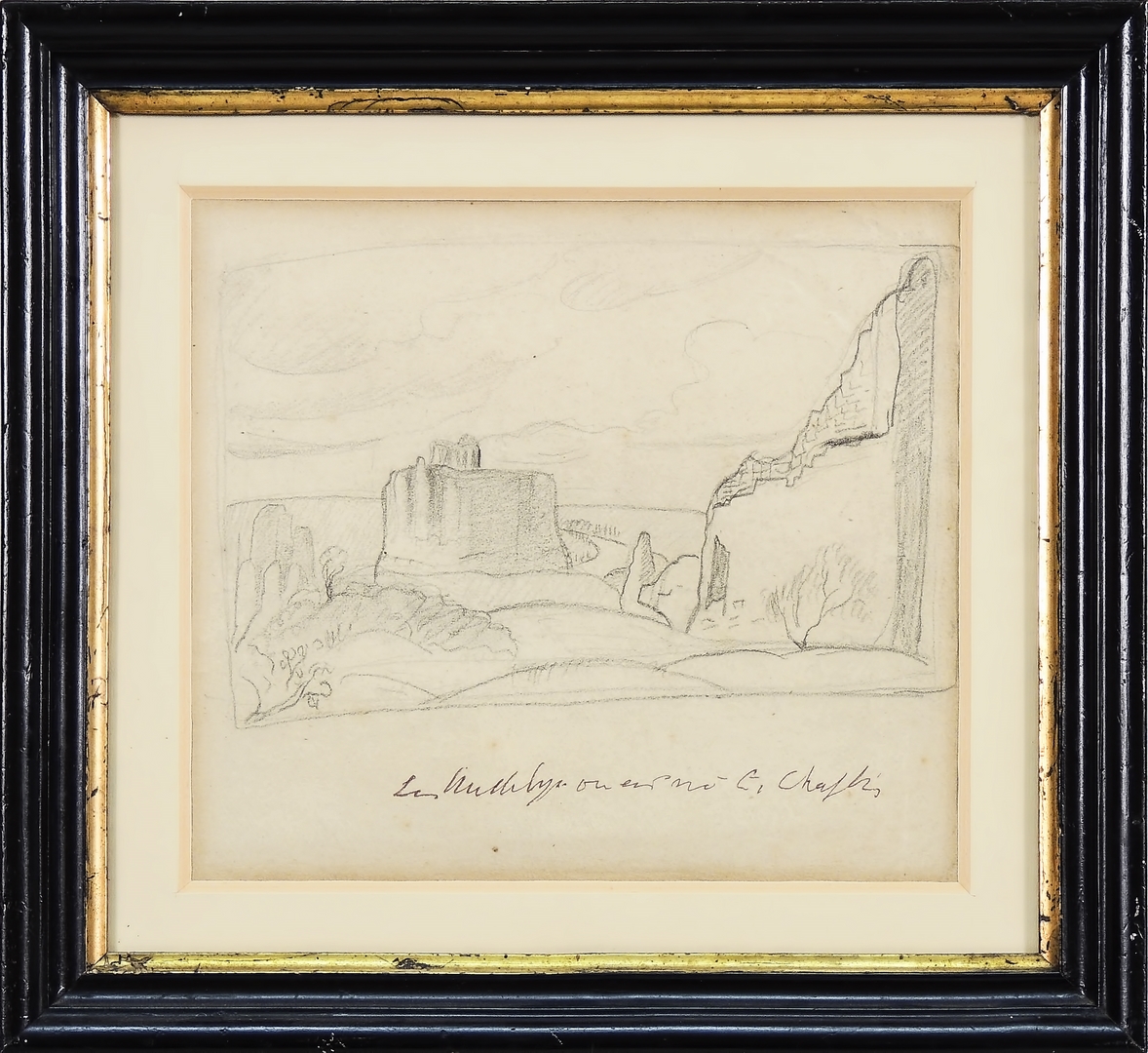 ELISABETH CHAPLIN (1890-1982) Paesaggio - Landscape disegno recto verso a matita su carta - recto verso pencil drawing on paper, firmato, in cornice cm 21x23 Provenienza: Galleria Michelucci, Firenze