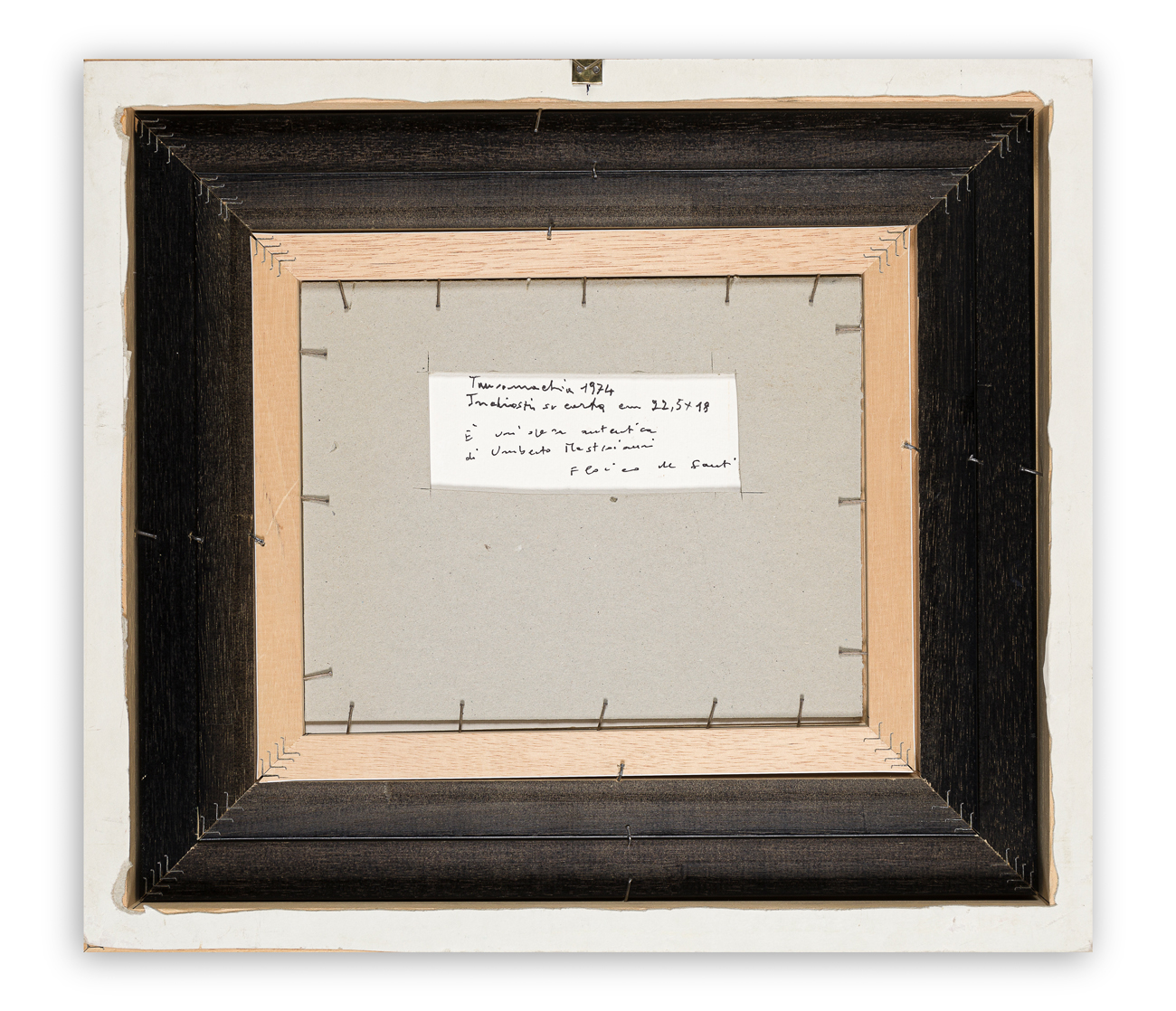 Titolo, tecnica, misure, datazione e dichiarazione di autenticità a cura di Floriano De Santi al retro