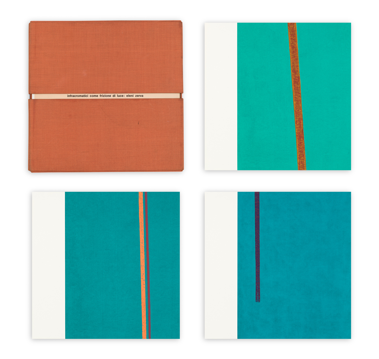 Cofanetto contente introduzione di Carlo Belloli e 15 lito-serigrafie di Eleni Zerva, ciascuna recante firma, numerazione (Esemplari 0000/120) e numero progressivo a matita al retro