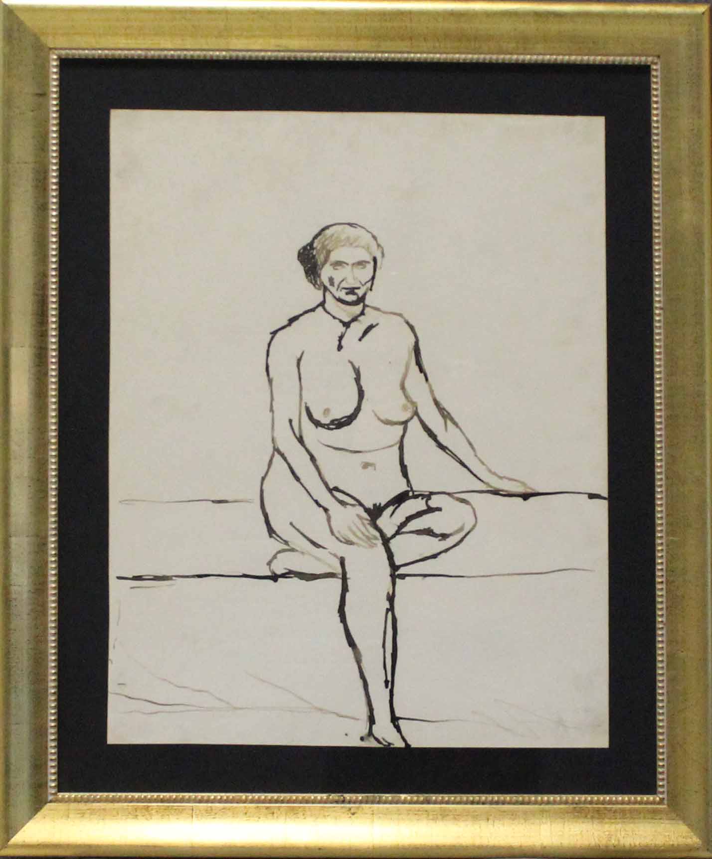 OTTONE ROSAI, "Nudo di donna seduto", 1947, inchiostro su carta, dim. 51x40. Opera archiviata presso l'Archivio Giovanni Faccenda. Opera con cornice.