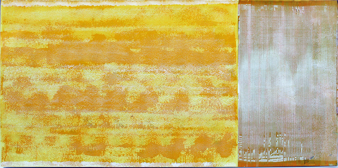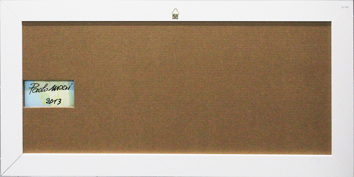 PAOLO MASI, 2013, smalti su cartone ondulato, dim 50x100. Opera accompagnata da autentica su foto dell'artista. Al verso: firma e anno. Opera protetta da teca in plexiglass