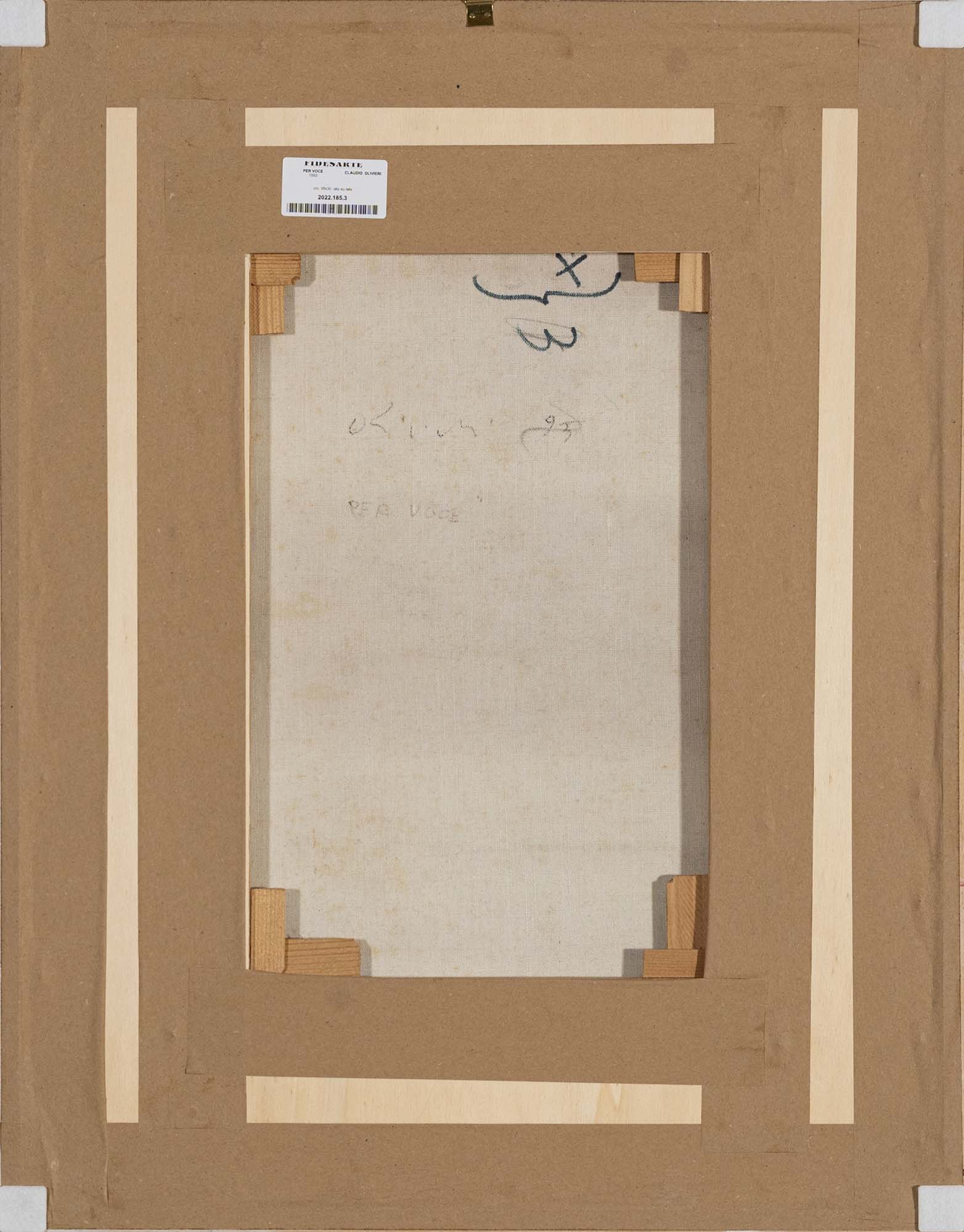 certificato di autenticità dell'Archivio Claudio Olivieri a cura di Claudio Poleschi Arte Contemporanea con relativo nr. di repertorio su foto