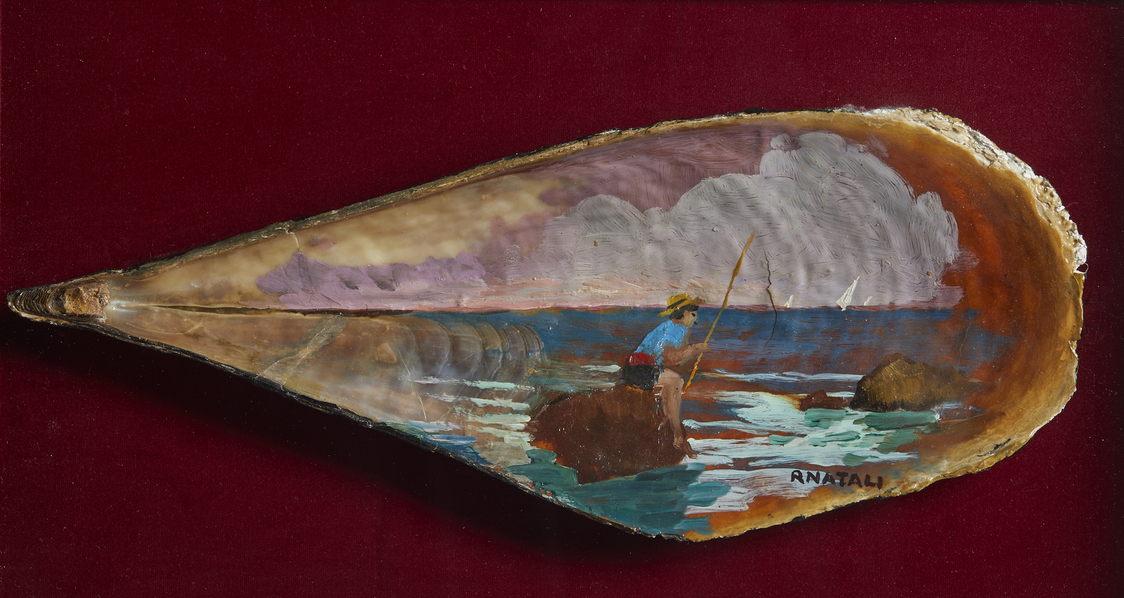 NATALI RENATO (1864 - 1947) Marina. Tecnica mista . Cm 40,00 x 16,00. Firma in basso a destra. Certificato d'autenticità dallo Studio d'arte Mutinense. Brescia. Certificato d'autenticità rilasciato da Art Shop Gallery, Pistoia. Provenienza: Collezione privata, Bologna; Galleria Mutinense, Brescia; Art Shop Gallery, Pistoia; Collezione privata, Firenze. Cornice presente