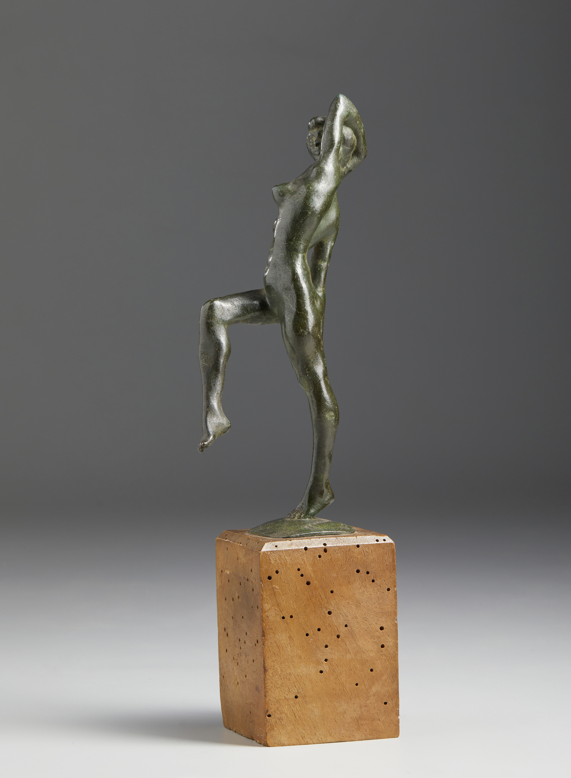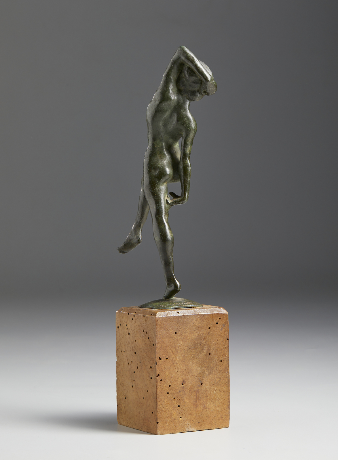 TORRESINI ATTILO (1884 - 1961) Senza titolo. Bronzo a patina verde. Cm 7,00 x 32,50 x 10,00. Firma a incisione in basso. Altezza base in legno: 10 cm. Lievi difetti.