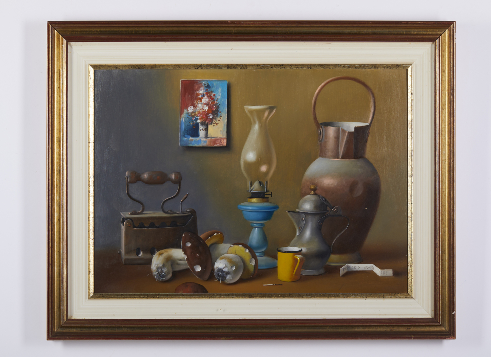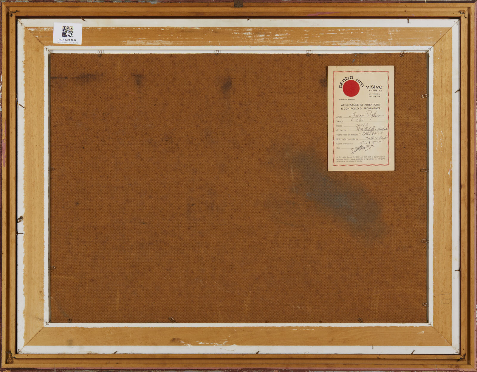 GROSSI PROFERIO (1923 - 2000) Senza titolo. 1983. Tecnica mista su tavola. Cm 69,50 x 48,50. Firma e anno in basso a sinistra. Al retro cartiglio Centro Arti Visive, Soresina di F.Mazzolari. Cornice presente