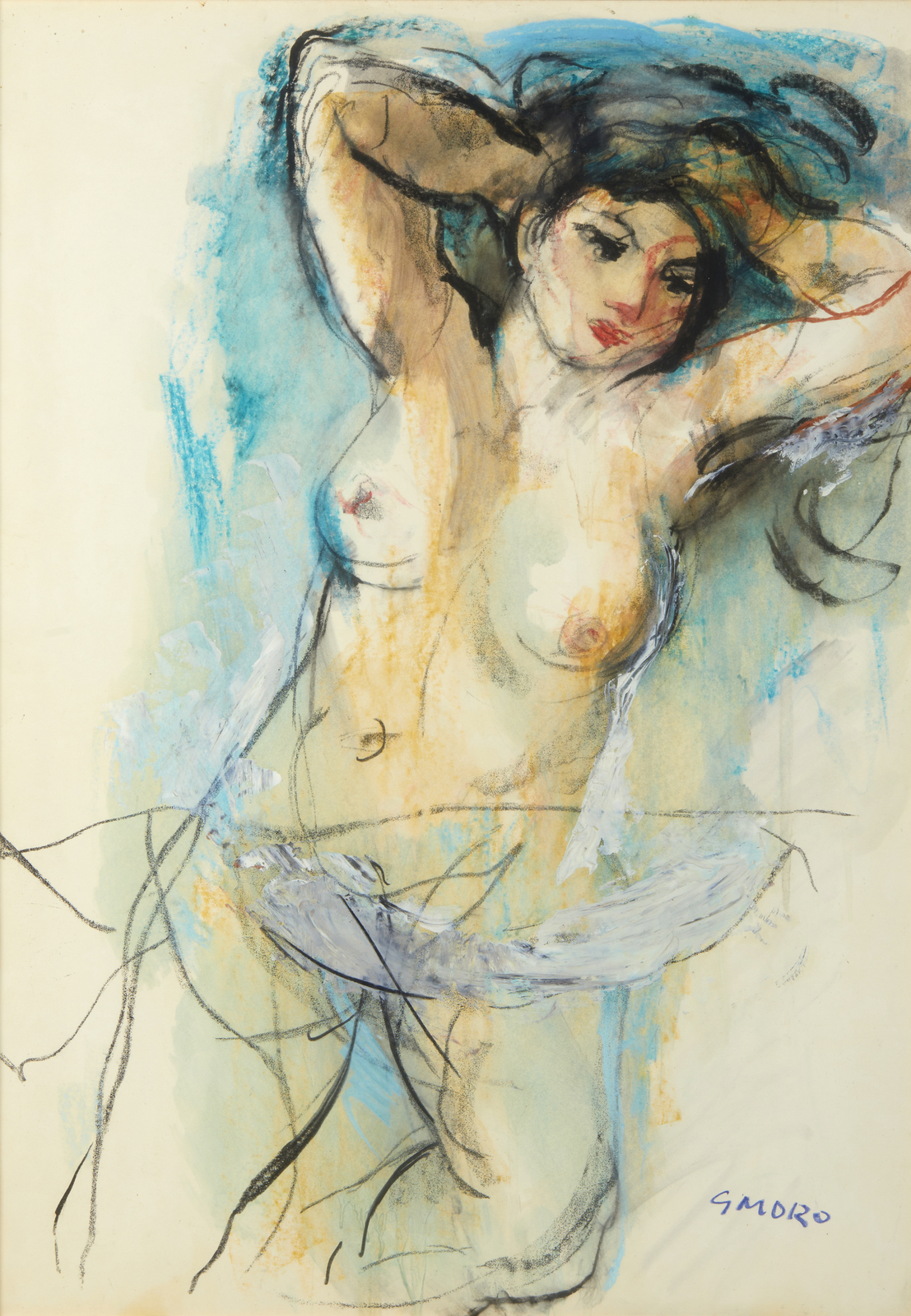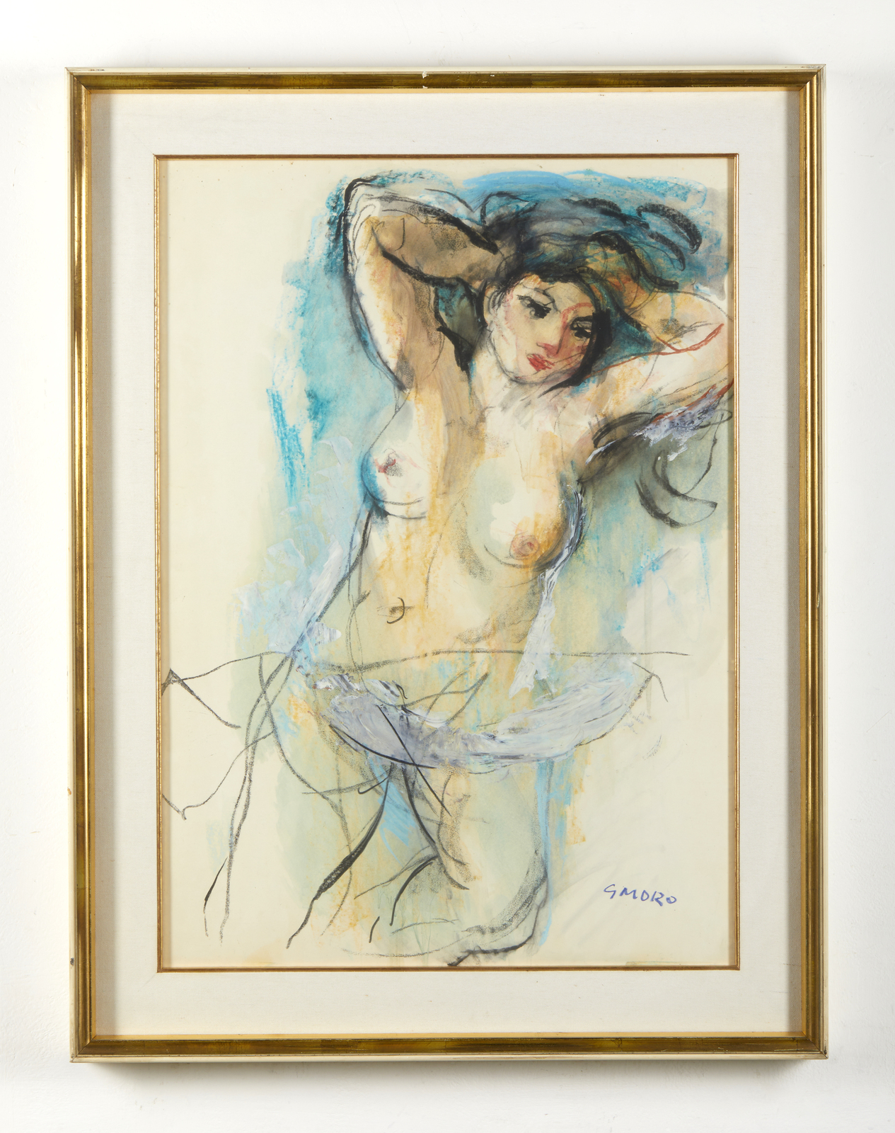 MORO GINO (1901 - 1977) Senza titolo. Tecnica mista su carta applicata su tela . Cm 50,00 x 70,00. Firma in basso a destra. Cornice presente