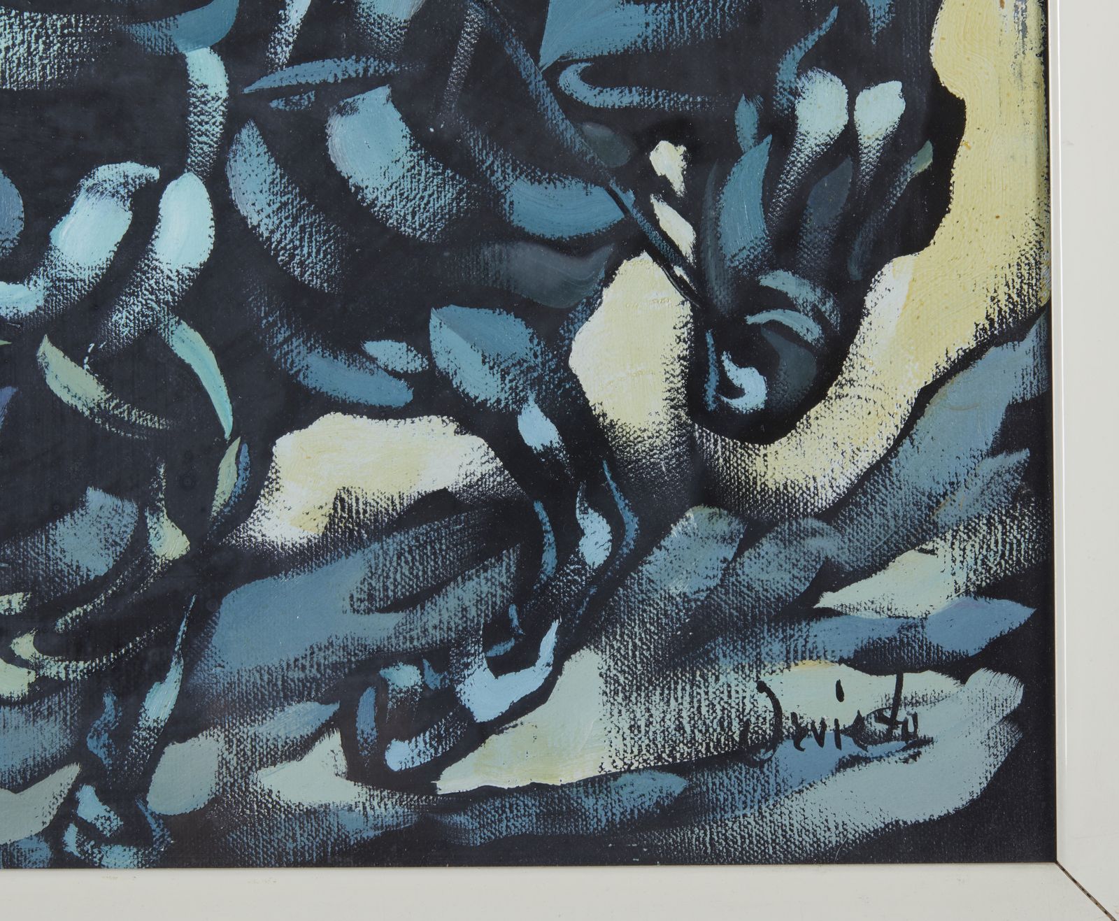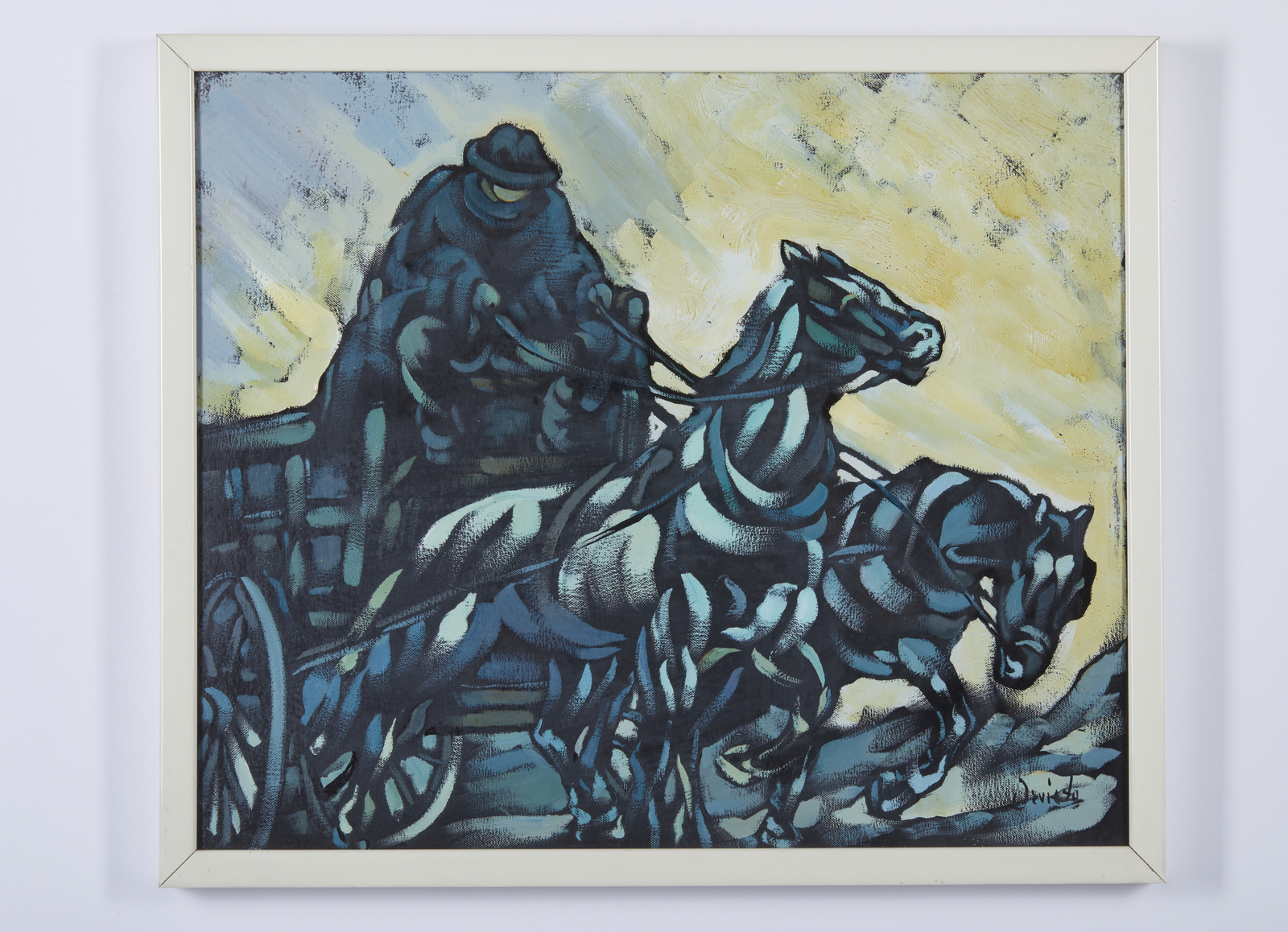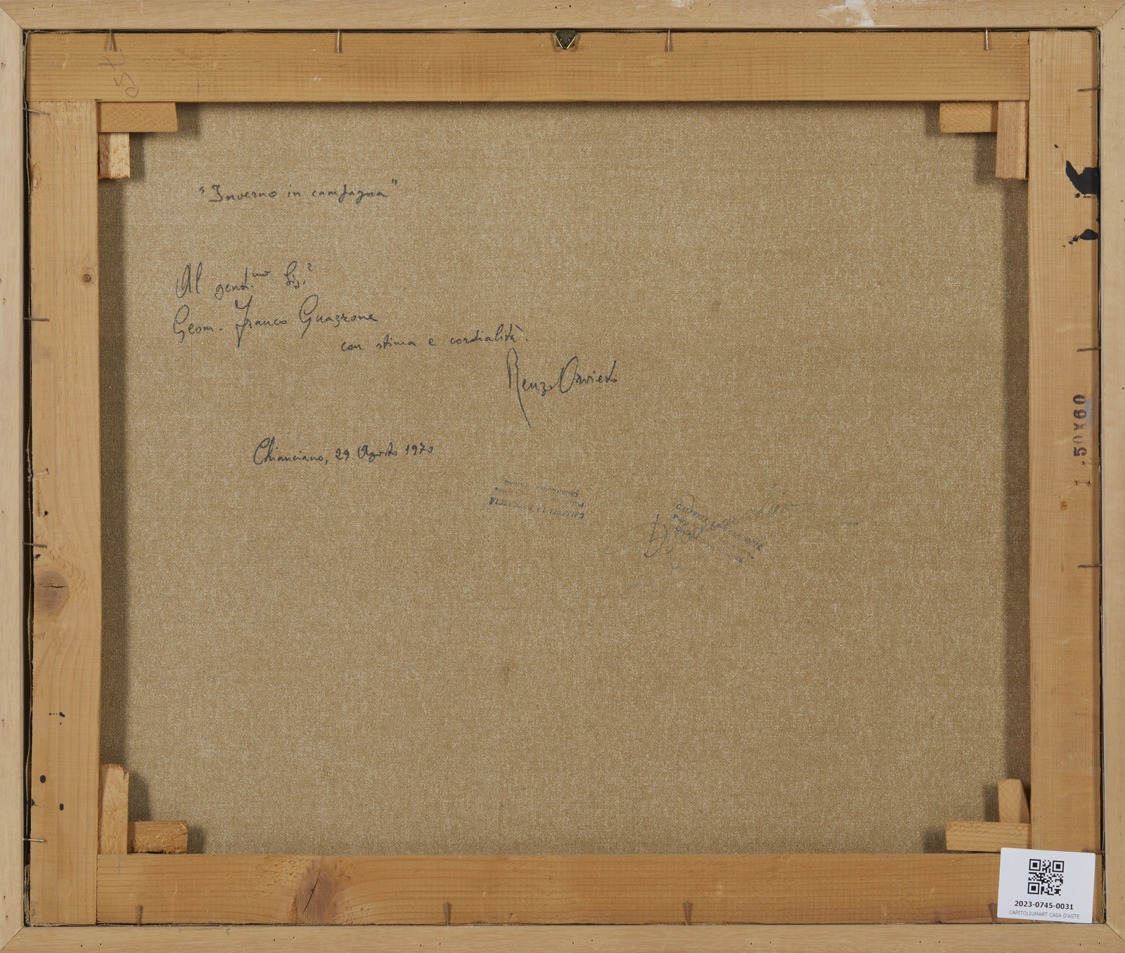 ORVIETO RENZO (n. 1922) Inverno in campagna. 1970. Olio su tela . Cm 60,00 x 50,00. Firma in basso a destra. Al retro titolo, firma e anno. . Cornice presente