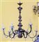 LAMPADARIO IN LEGNO DORATO A MECCA - GILTWOOD CHANDELIER sei bracci portacandela realizzati come tralci in tole dipinta verde, pendenti in vetro h cm 80