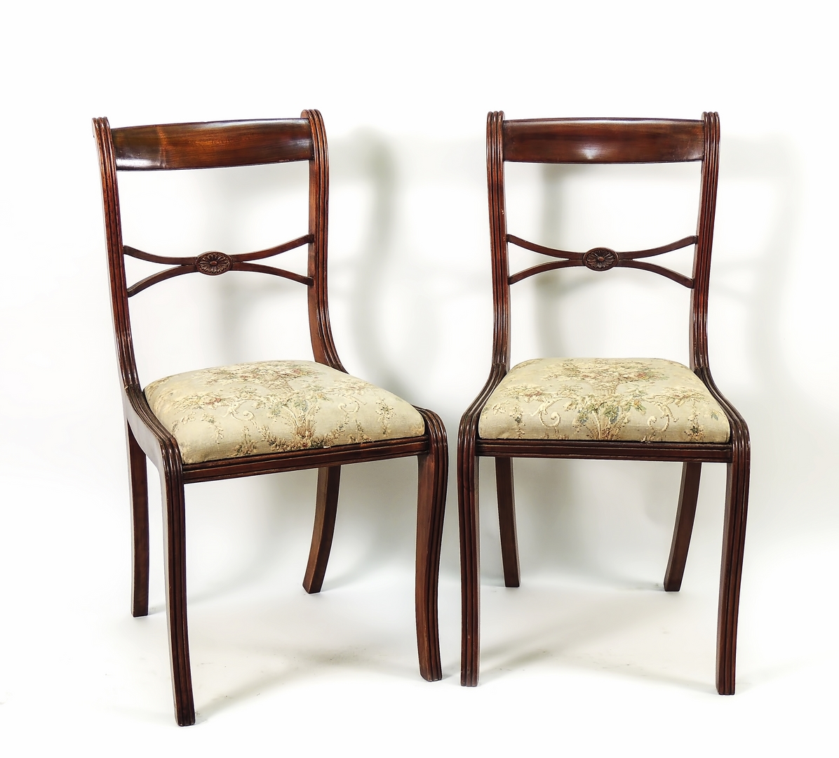 COPPIA DI SEDIE IN NOCE - PAIR OF WALNUT CHAIRS XIX secolo - 19th Century schienale mosso, cartella intagliata con piccolo rosone, gambe anteriori mosse, posteriori a sciabola, seduta rivestita in tessuto a fiori