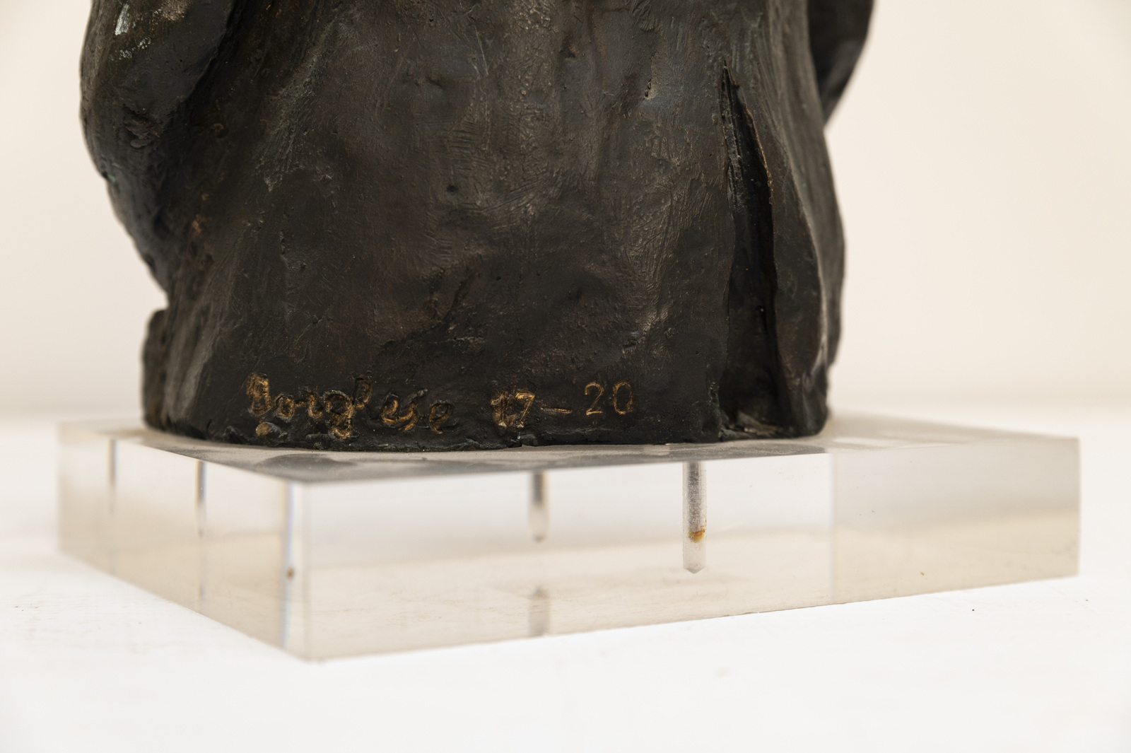 BORGHESE FRANZ (1941 - 2005) Senza titolo. Bronzo.. Cm 19,50 x 26,00 x 12,00. 1/20. Tiratura e firma a incisione al retro. Dimensioni con la base: 28x18x15 cm. Lievi difetti.