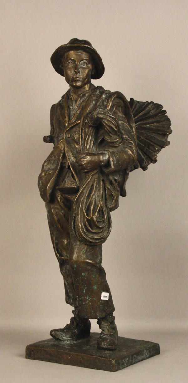 Firmato. BIGLIOLI MARIO - Nato a Romano di Lombardia (Bergamo) nel 1890. Morto a Milano nel 1983. Scultura in bronzo patinato raff. ''SPAZZACAMINO''. Firmata sulla base. Mis. Alt. cm. 54 ca.