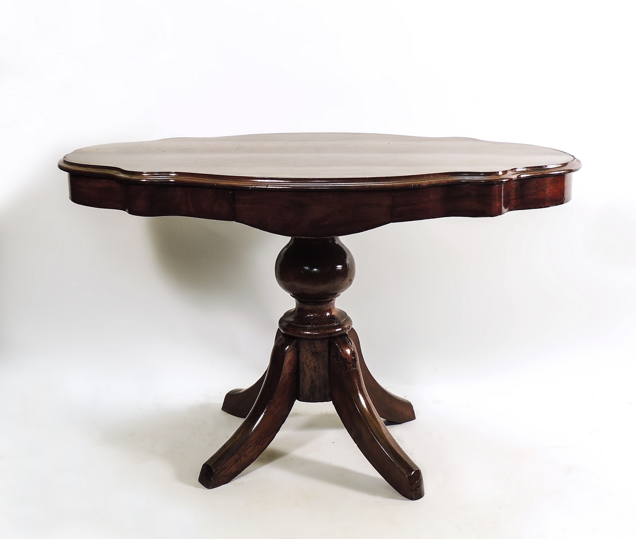 TAVOLINO OVALE DA APPOGGIO IN NOCE - WALNUT TABLE seconda metà del XIX secolo - second half of 19th Century piano sagomato, sostegno centrale tornito su quattro piedi a sciabola
