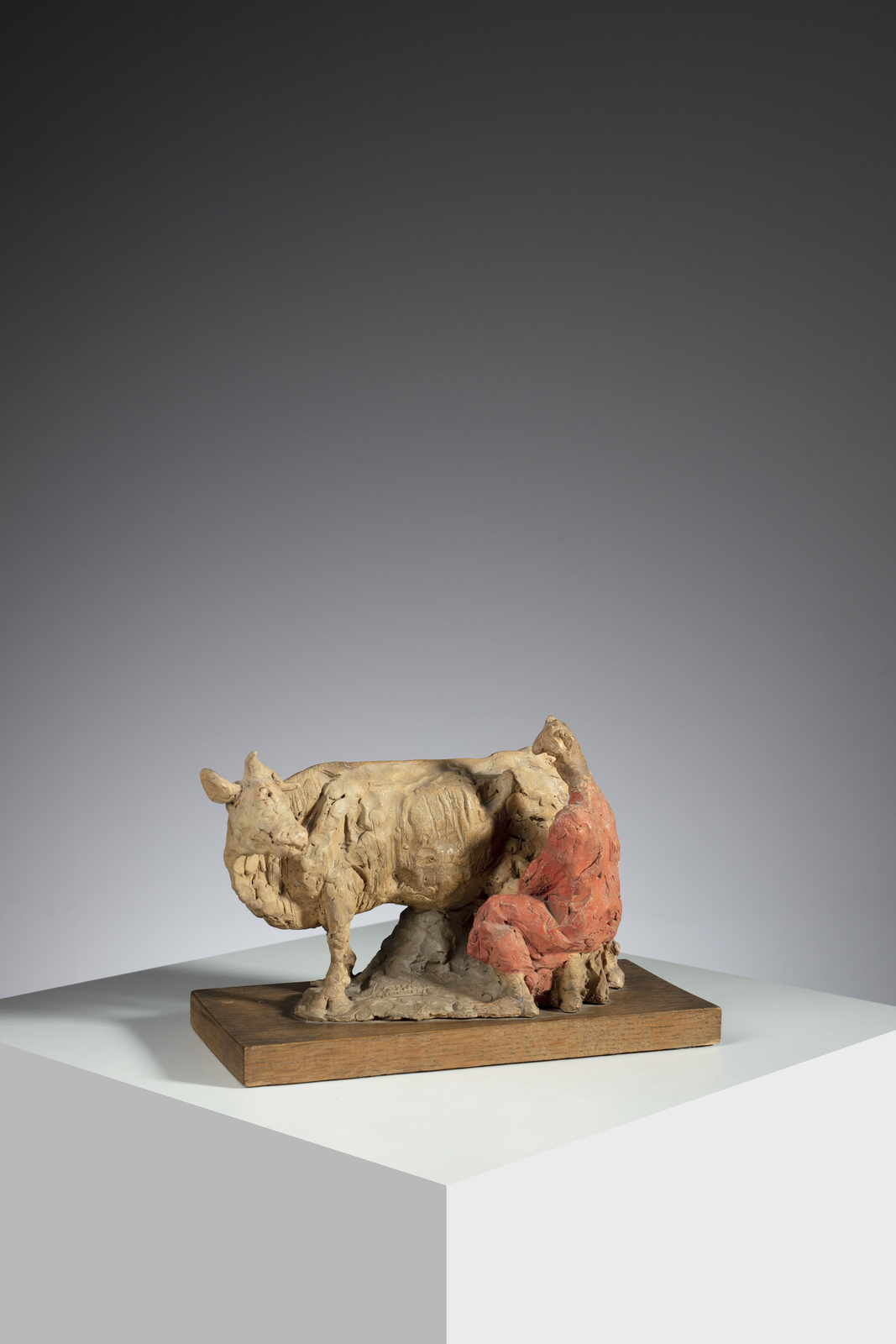 TOMBA CLETO (1898 - 1987) La mucca e il diavolo. Terracotta modellata a mano e smaltata.. Cm 22,00 x 16,00 x 11,00. Firma incisa all abase e timbro. Pezzo unico, anni Cinquanta.
