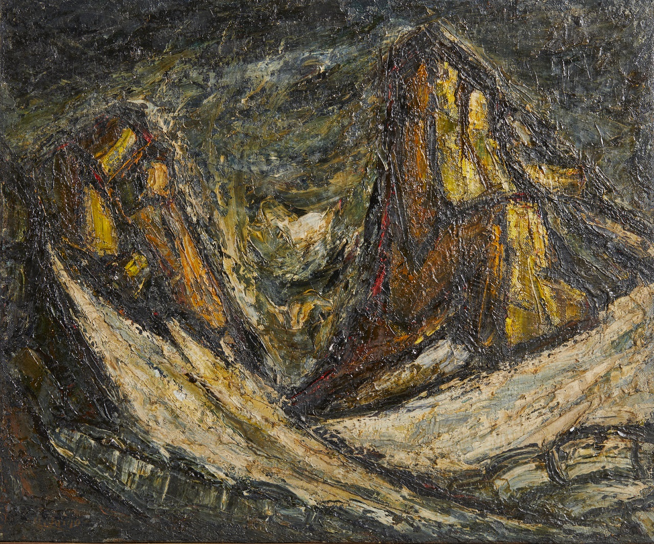 NARDELLA ARDUINO (1907 - 1978) Tavola in litografia. . 1950. Olio su tela . Cm 60,00 x 50,00. Firma in basso a sinistra. Al retro titolo e cartiglio descrittivo Galleria Toselli, Milano. Lievi difetti.