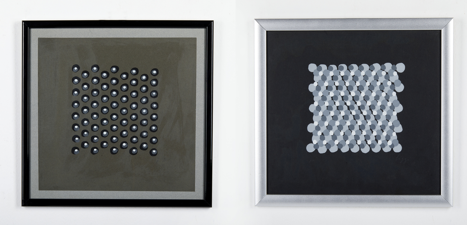 BIGGI GASTONE (1925 - 2014) Lotto composto da n.2 fogli. Senza titolo. Serigrafia. Cm 34,00 x 33,00. 1. 1/16. Tiratura e firma in basso a matita. Timbro a secco La Nuova Foglio, Pollenza, in basso a destra. Difetti.