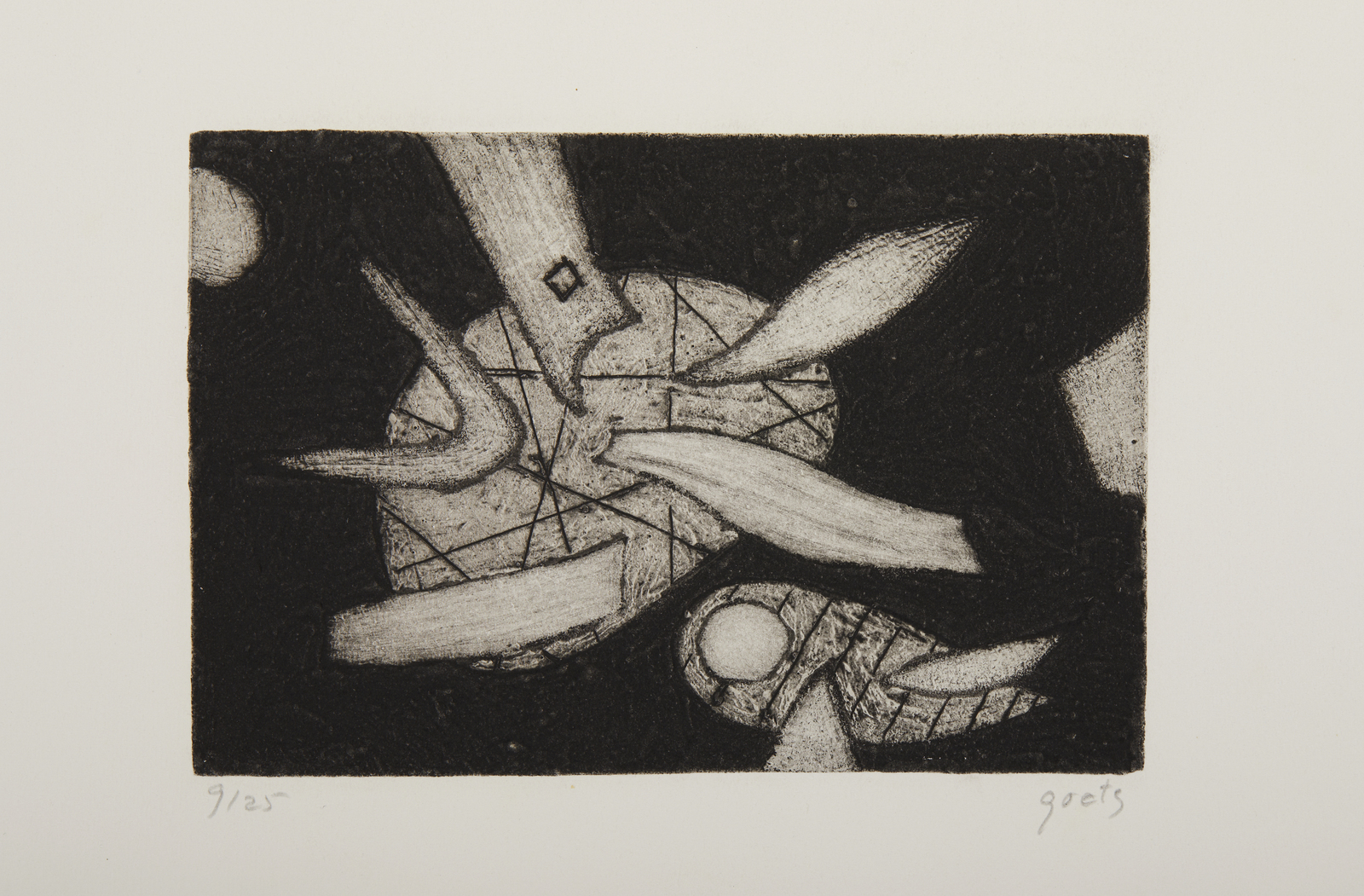 GOETZ HENRI (1909 - 1989) Senza titolo. Acquaforte. Cm 49,50 x 35,00. 9/25. Tiratura e firma in basso a matita. Dimensione lastra: 12x17.5 cm. Lievi difetti.