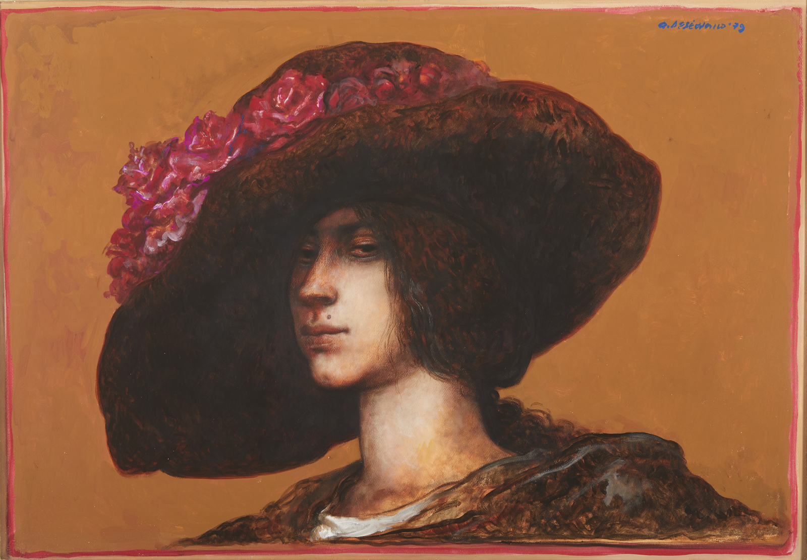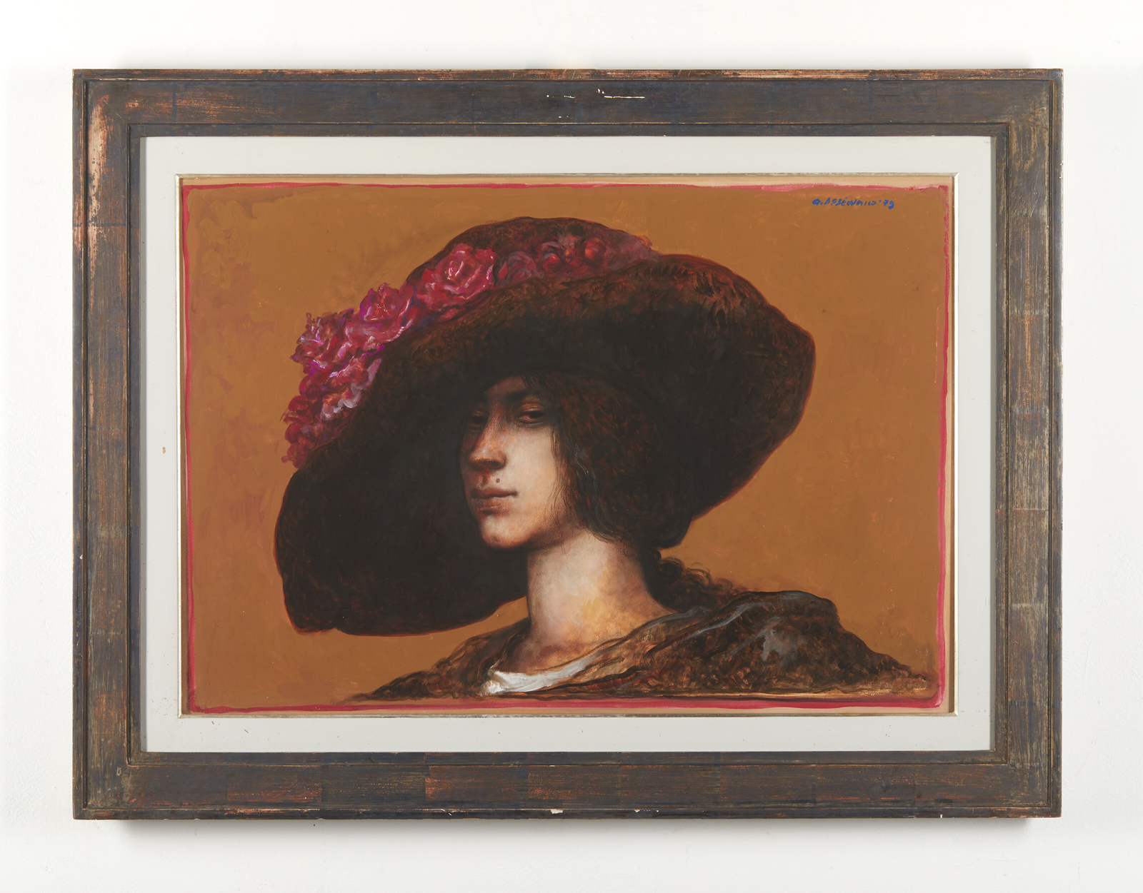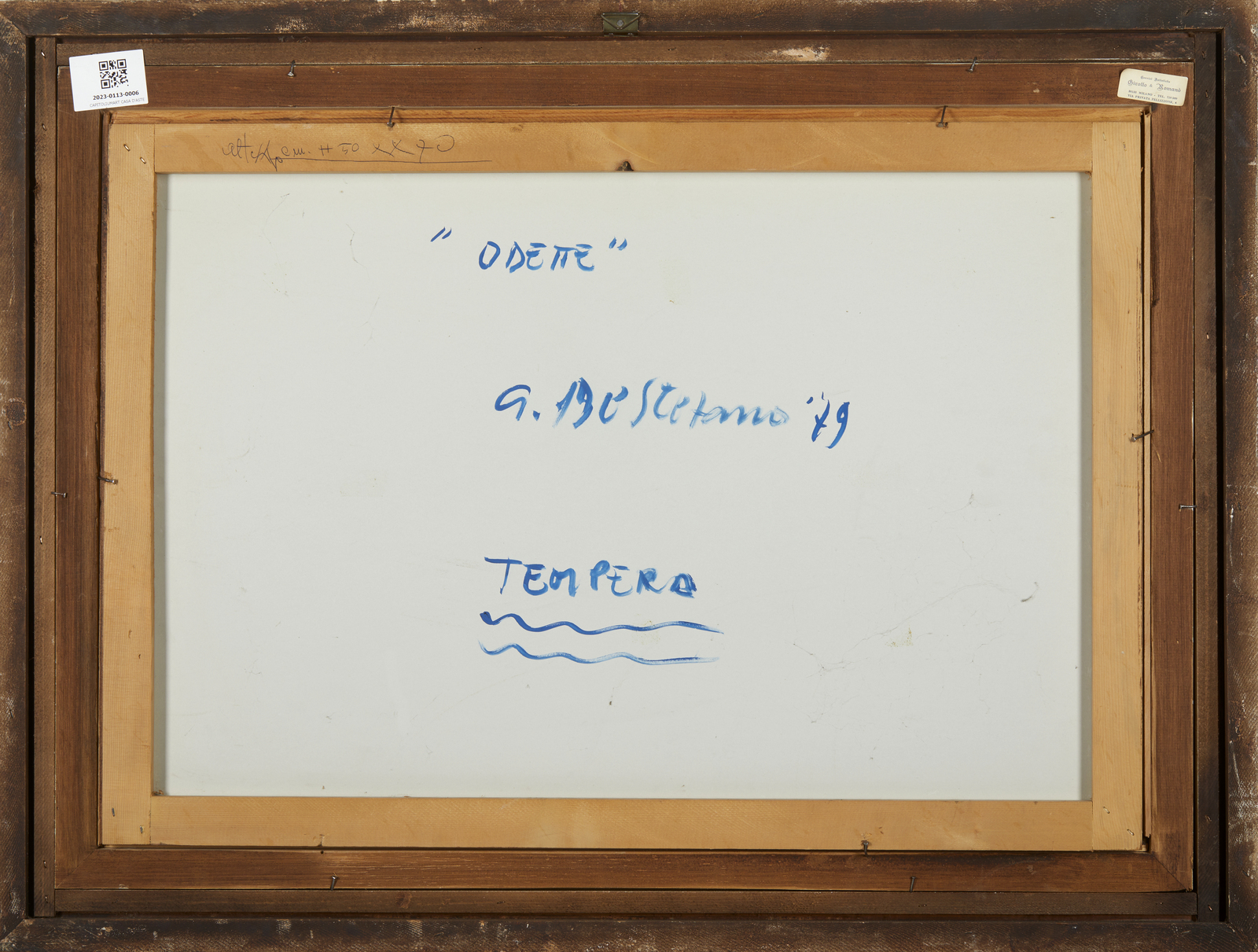 DE STEFANO ARMANDO (n. 1926) Odette. 1979. Tempera su cartone. Cm 73,00 x 51,00. Firma e anno in alto a destra. Timbro a secco Schoellershammer Schutzmarke in basso a sinistra. Al retro titolo, firma e anno. Provenienza: Collezione privata, Parma. Cornice presente