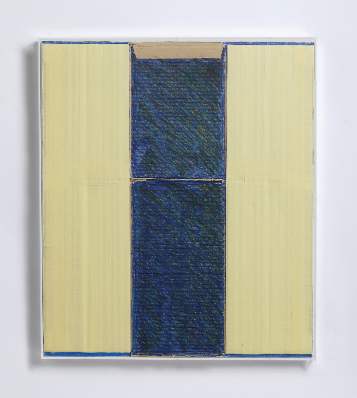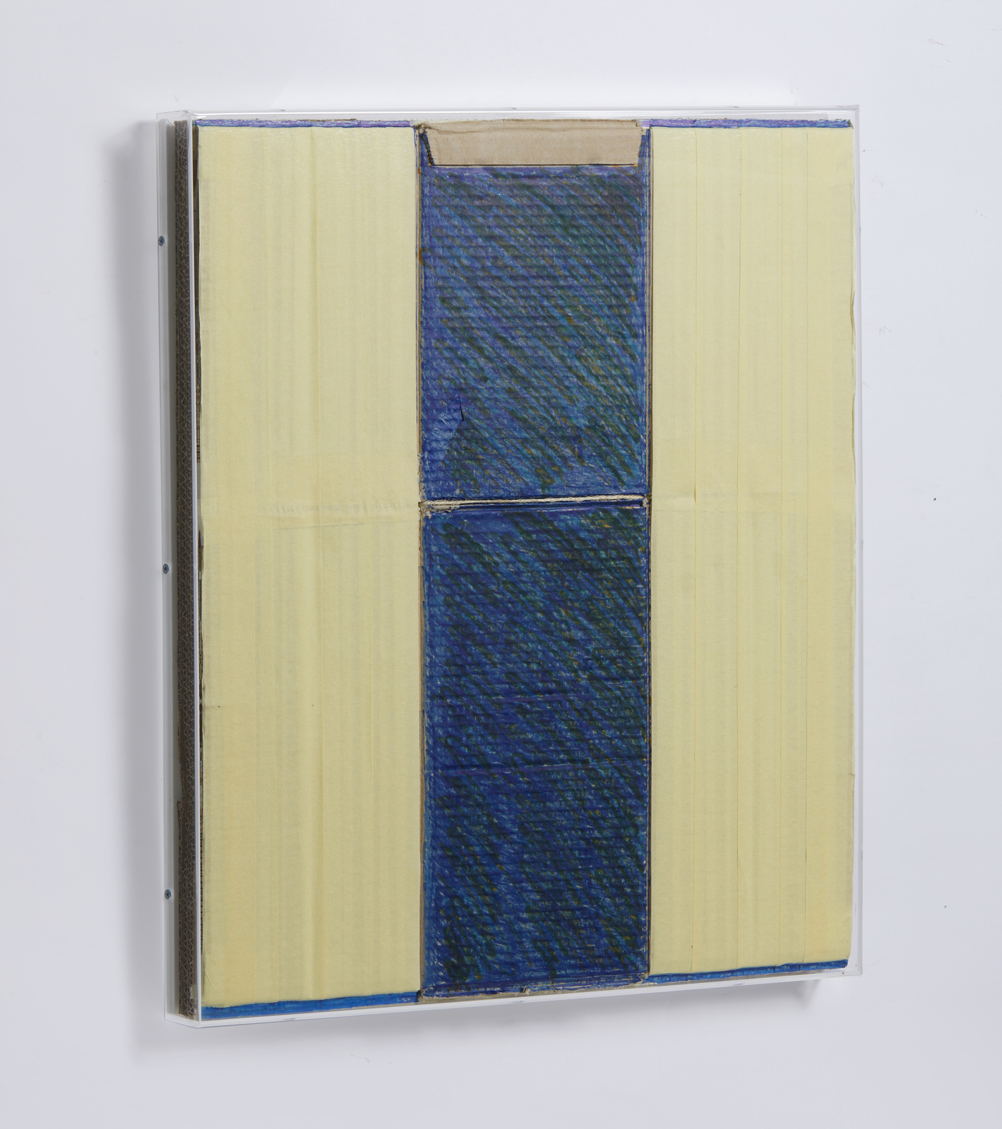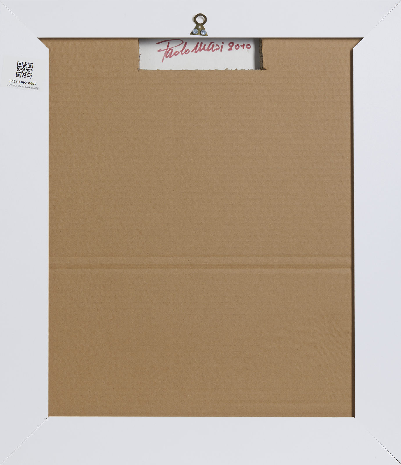 MASI PAOLO (n. 1933) Senza titolo. 2010. Tecnica mista su cartone. Cm 50,00 x 57,00. Al retro firma e anno. Entro teca di plexiglass. Autentica dell'artista su fotografia. Cornice presente