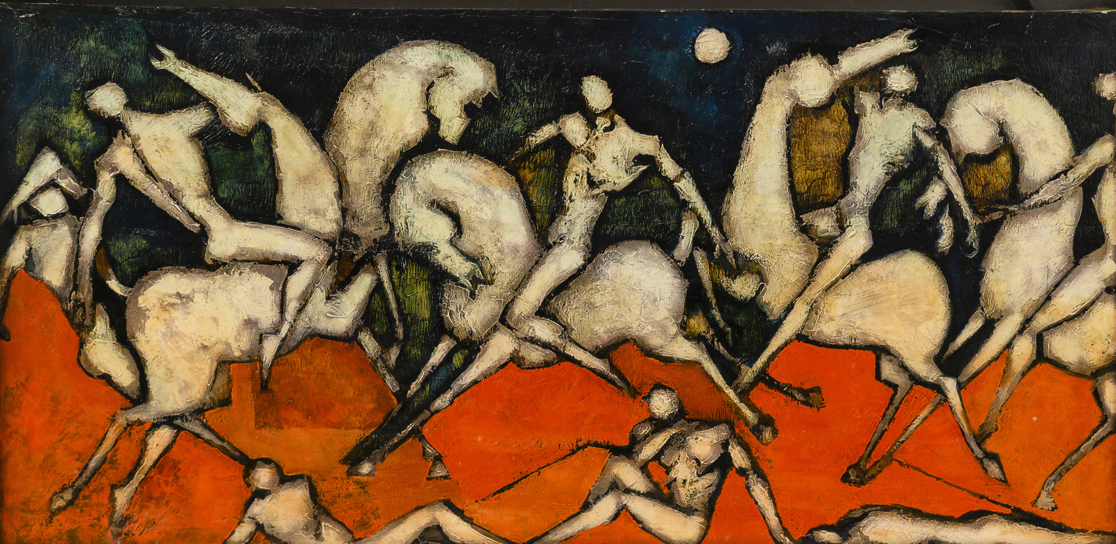 LANDI BRUNO (n. 1941) Battaglia. Olio su tela . Cm 100,00 x 50,00. . Cornice presente