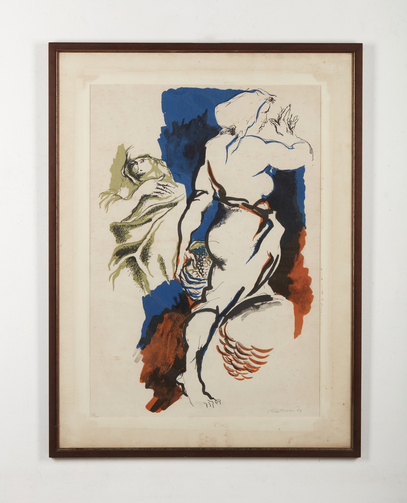 MURER AUGUST (1922 - 1985) Senza titolo. 1976. Litografia a colori. Cm 62,00 x 83,00. 192/200. Tiratura, firma e anno in basso a matita. Provenienza: Collezione privata, Bologna. Difetti. Cornice presente