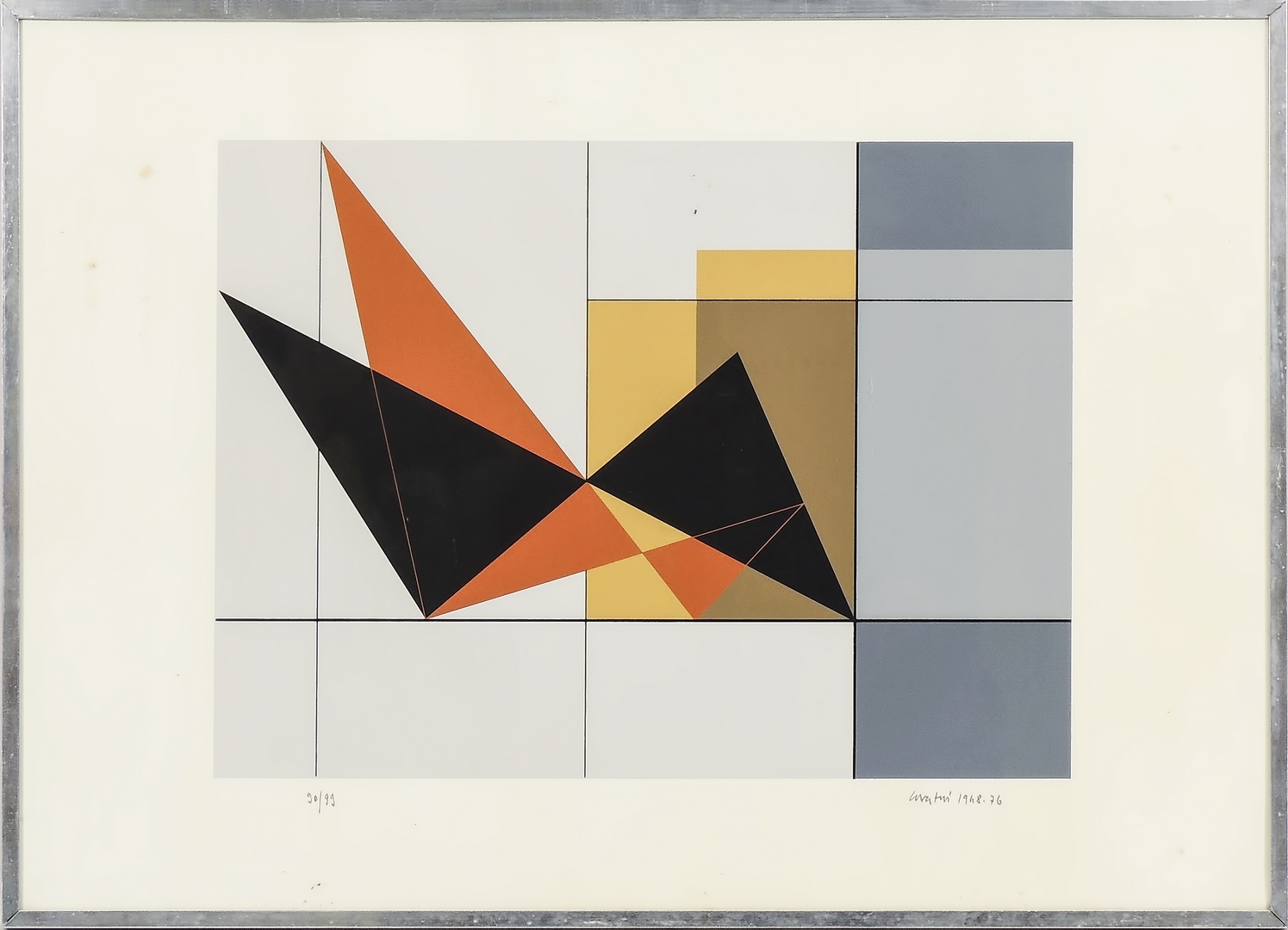 GUALTIERO NATIVI (1921-1999) Composizione geometrica 1948-76 - Geometric Composition serigrafia - silkscreen print, es 90/99, firmata e datata, in cornice, cm 35x47