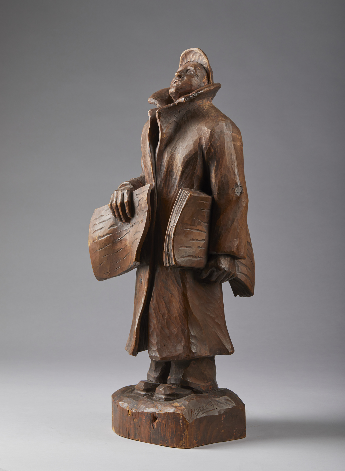 MURER AUGUST (1922 - 1985) Lo Strillone. Legno. Cm 17,50 x 61,00 x 20,00. Firma incisa alla base.