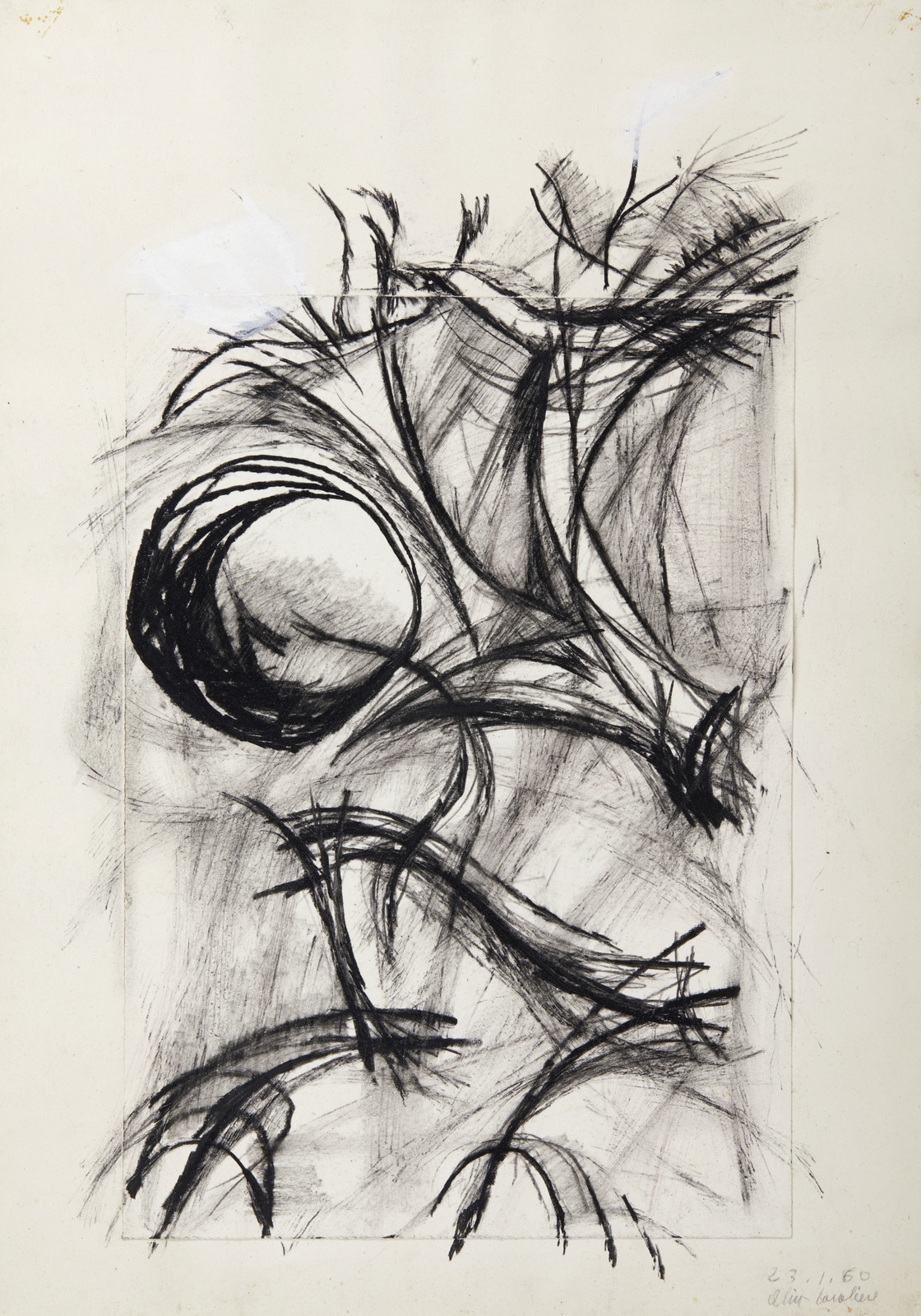 CAVALIERE ALIK (1926 - 1998) Senza titolo. 1960. Tecnica mista su carta. Cm 35,00 x 50,00. Firma e anno in basso a destra. Provenienza: Collezione Lana, Milano. Lievi difetti.