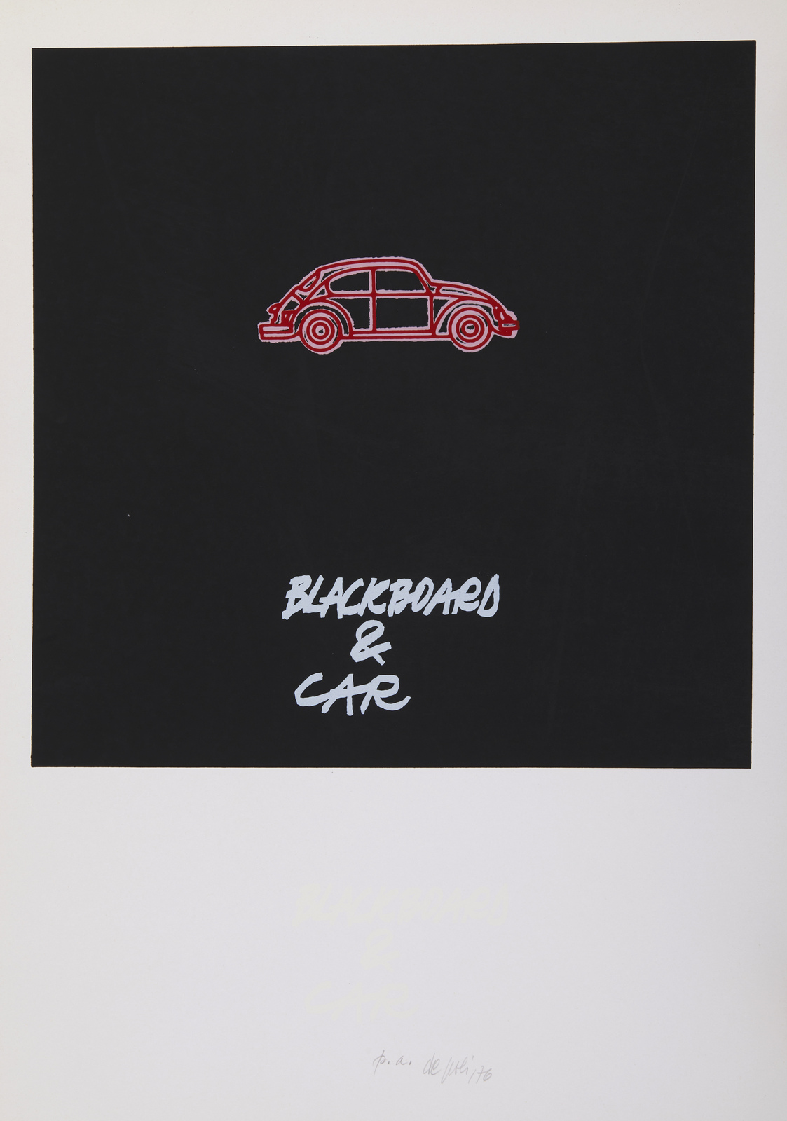 DE POLI FABIO (n. 1947) Blackboard & car. 1976. Litografia. Cm 50,00 x 70,00. P.a. Tiratura, firma e anno in basso a matita. Titolo al centro a stampa. Lievi difetti.