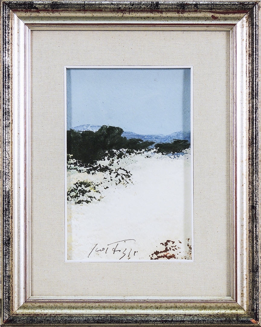 SERGIO SCATIZZI (1918-2009) Paesaggio Anni Ottanta - Landscape 80s olio su cartoncino - oil on cardboard, firmato, in cornice cm 23x16 With Author's authentication on photo