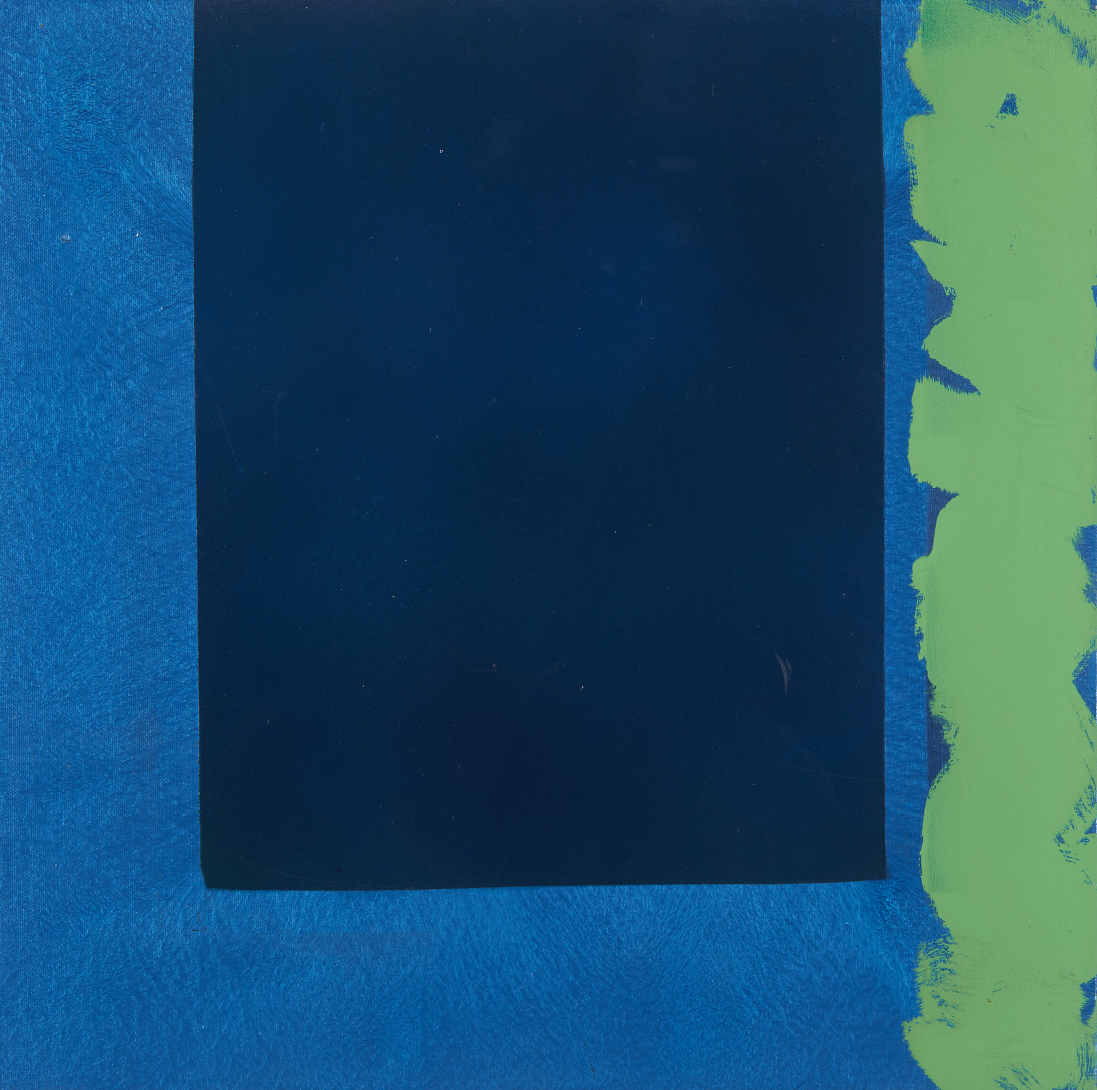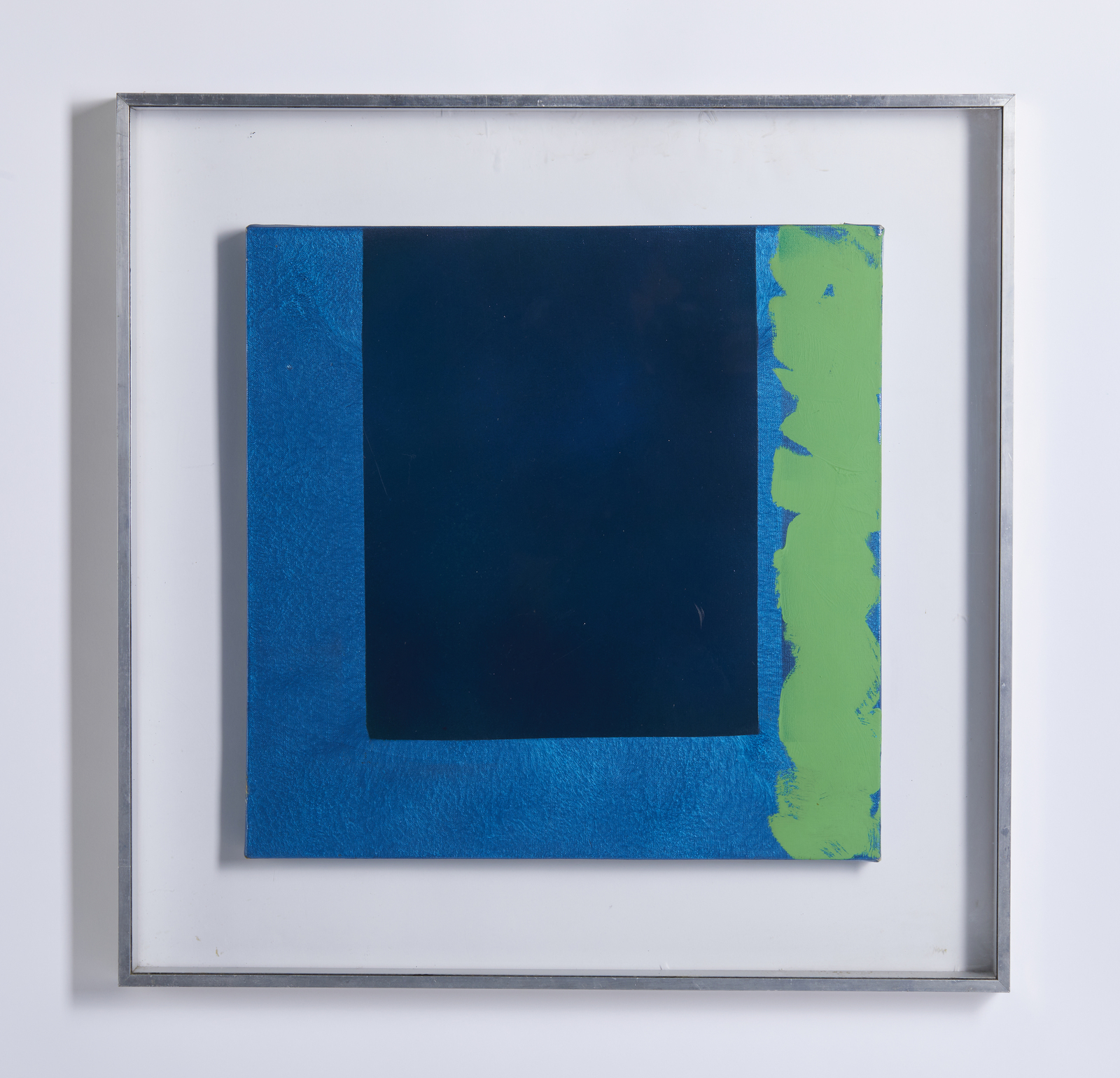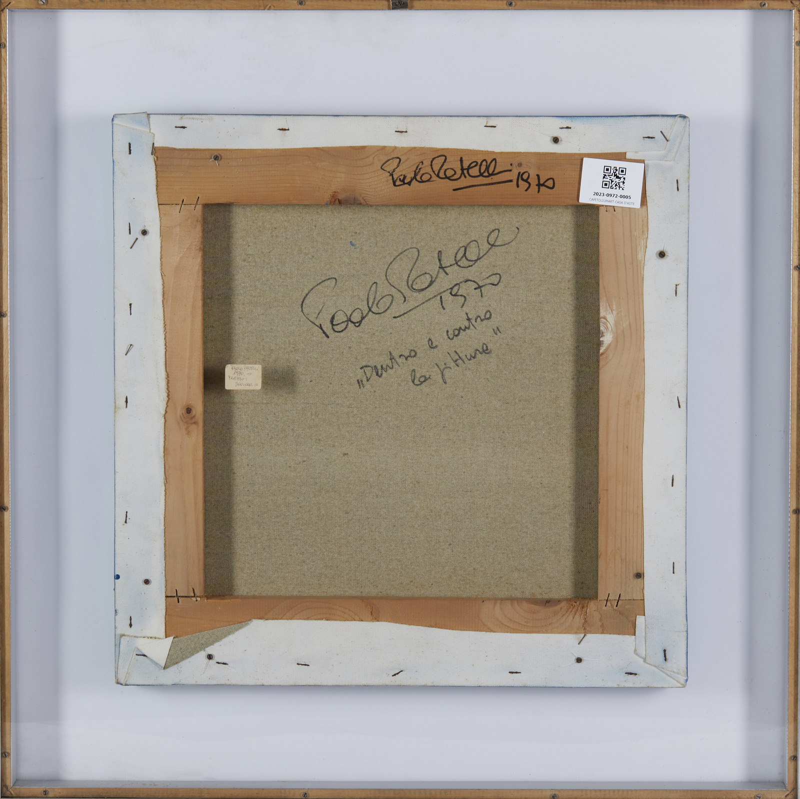PATELLI PAOLO (n. 1934) Dentro e contro la pittura. . 1970. Olio e smalto su tela. Cm 50,00 x 50,00. Al retro titolo, firma e anno. Provenienza: Collezione privata, Treviso. Entro teca in plexiglass. Lievi difetti. Cornice presente