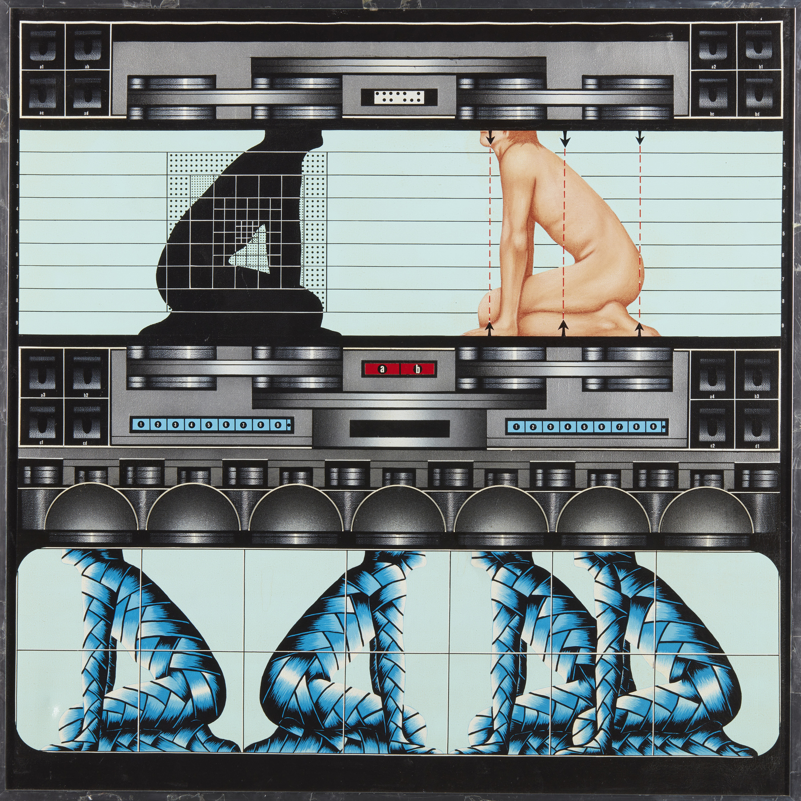 GERICO (n. 1946) Incasellamento. 1977. Acrilico su tela. Cm 68,50 x 68,50. Al retro titolo e firma. Cornice presente