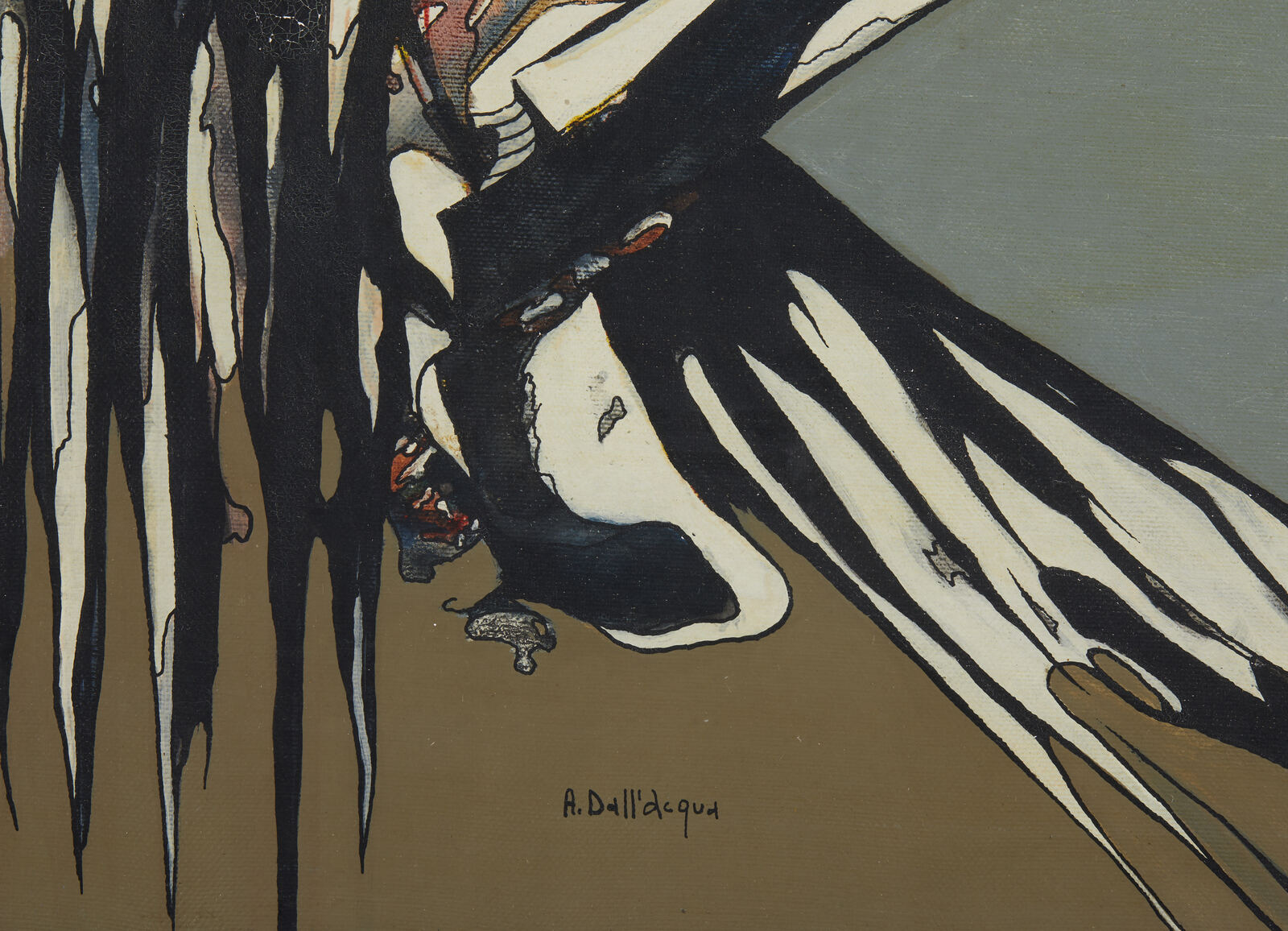 AUTORE NON IDENTIFICATO L'altalena. Acrilico su tela. Cm 69,00 x 49,00. Firmato A. Dell'Acqua in basso a sinistra.