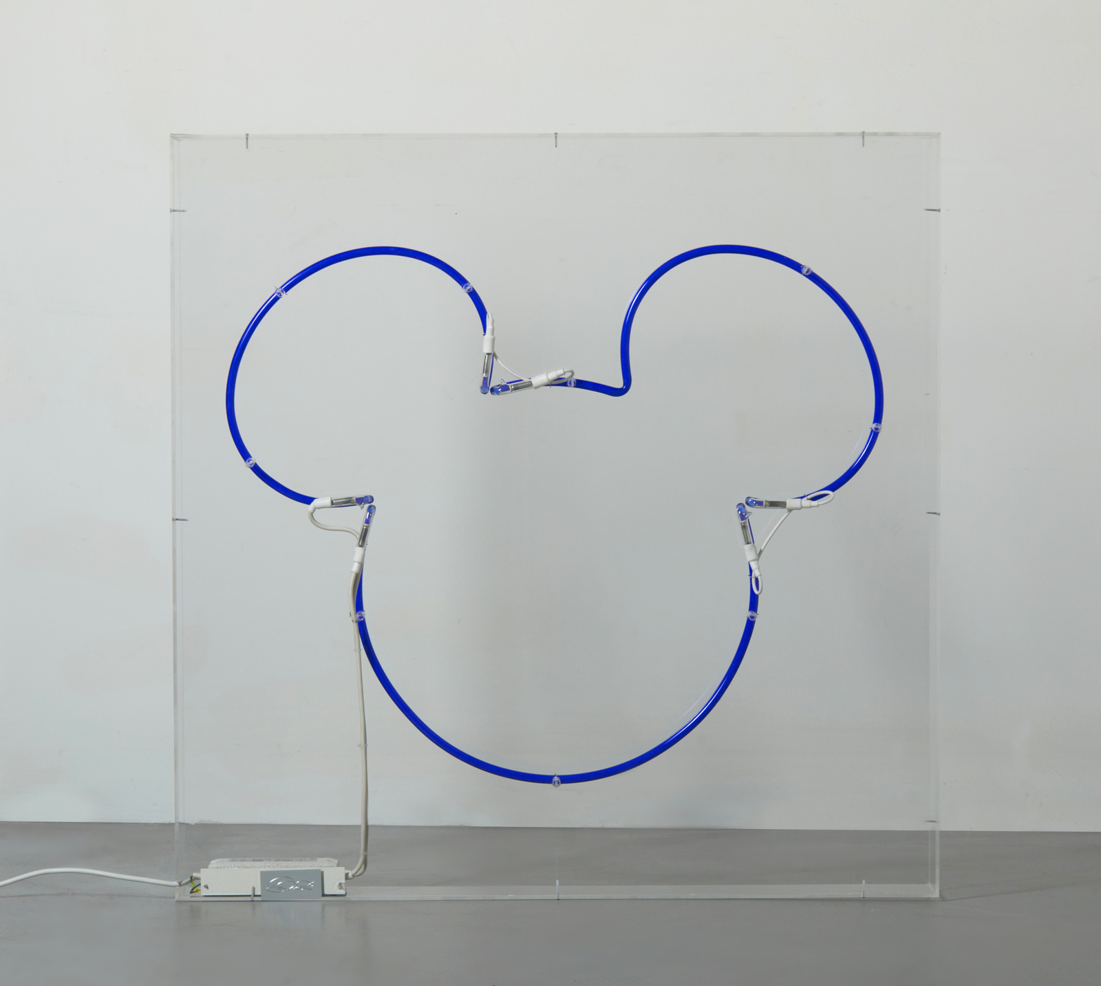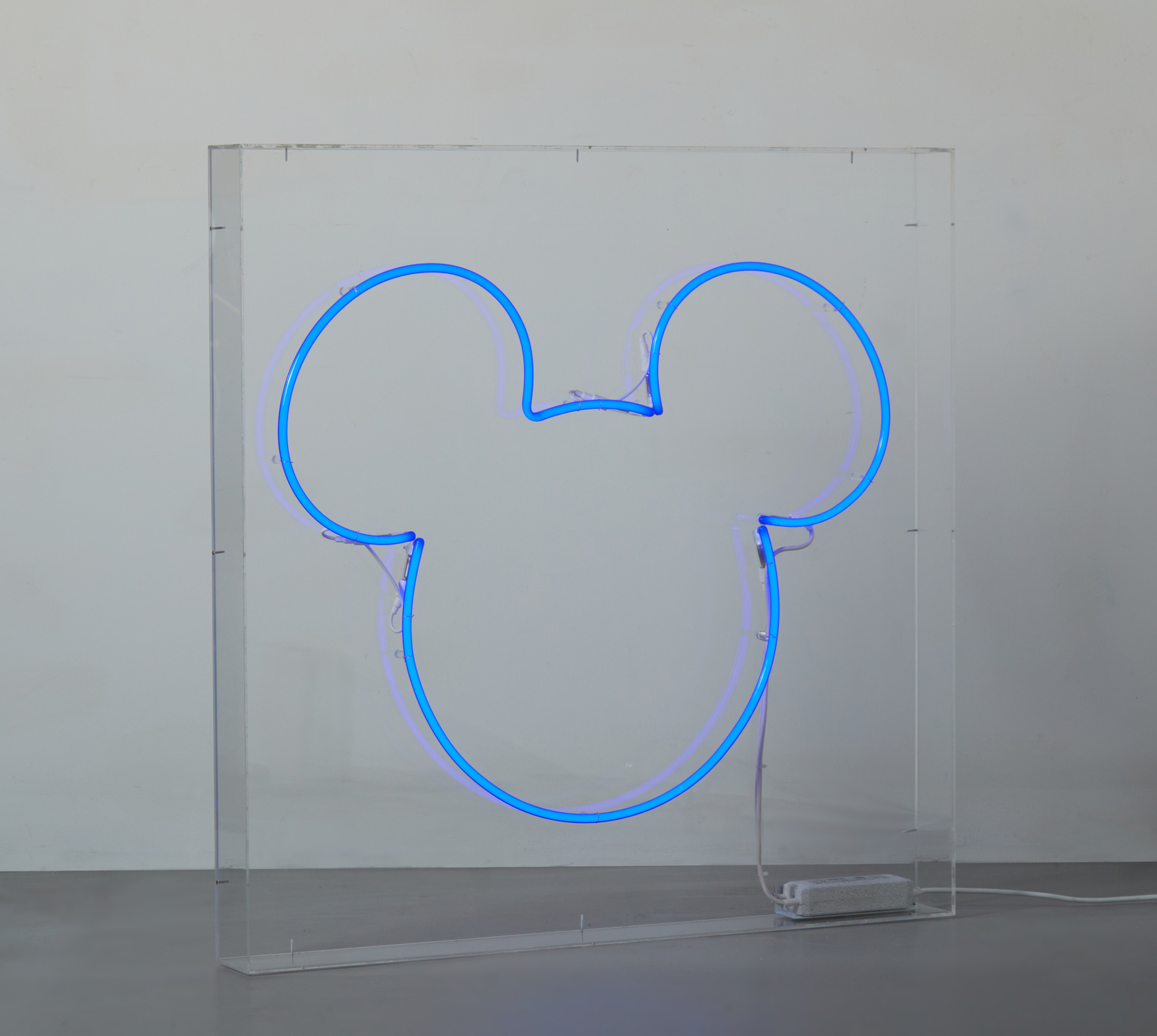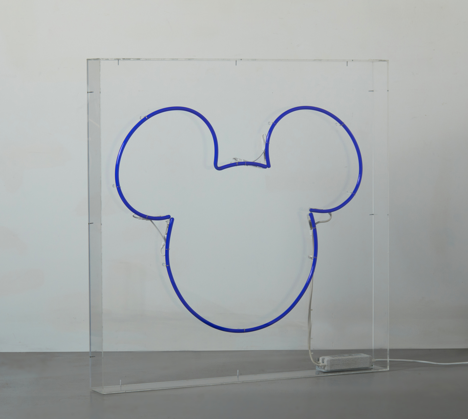 SAVIOLI ROBERTO (n. 1962) Un topo blu. 2021. installazione luminosa. Cm 100,00 x 100,00 x 10,00. Autentica dell'artista su fotografia. Entro teca in plexiglass.