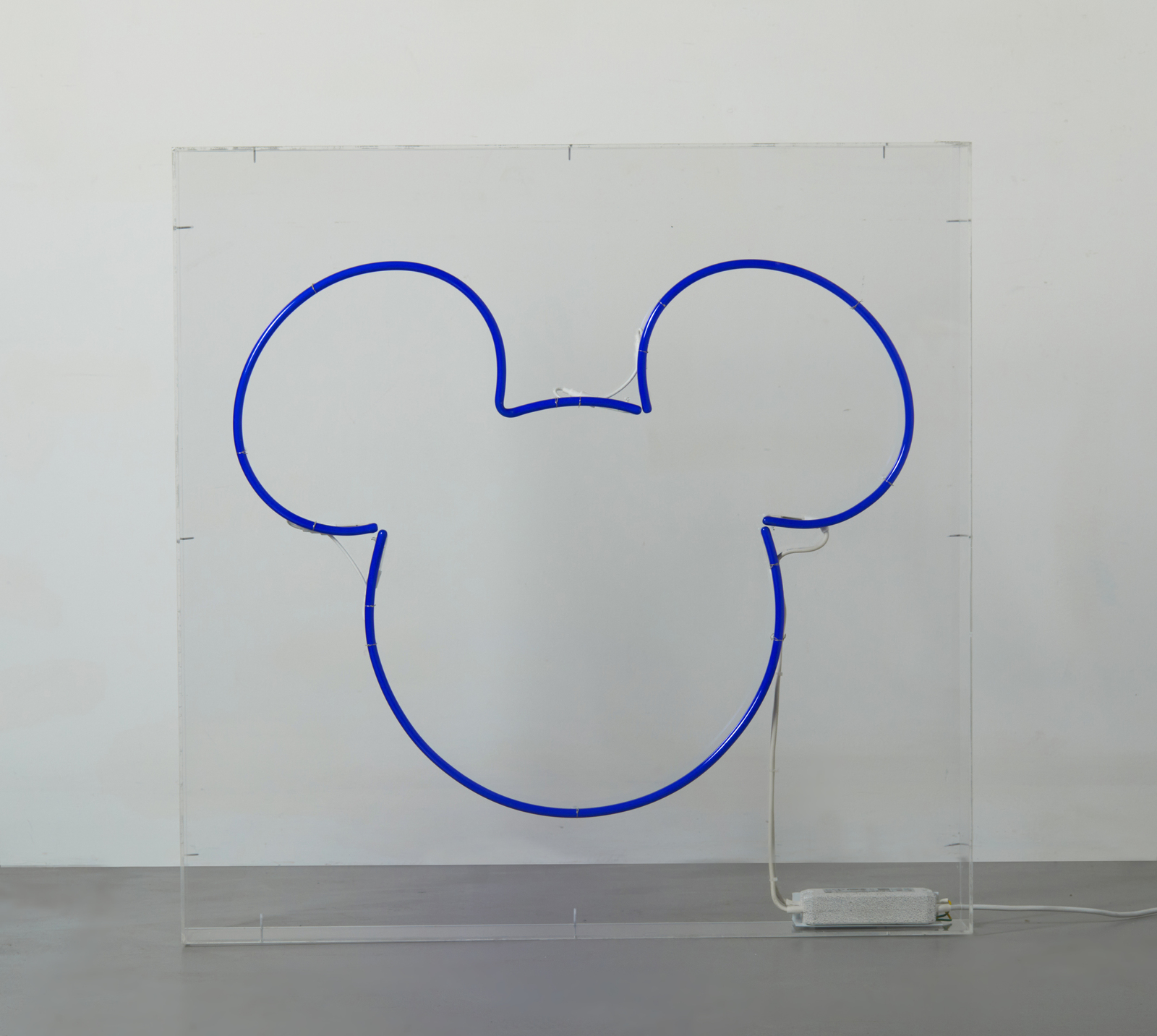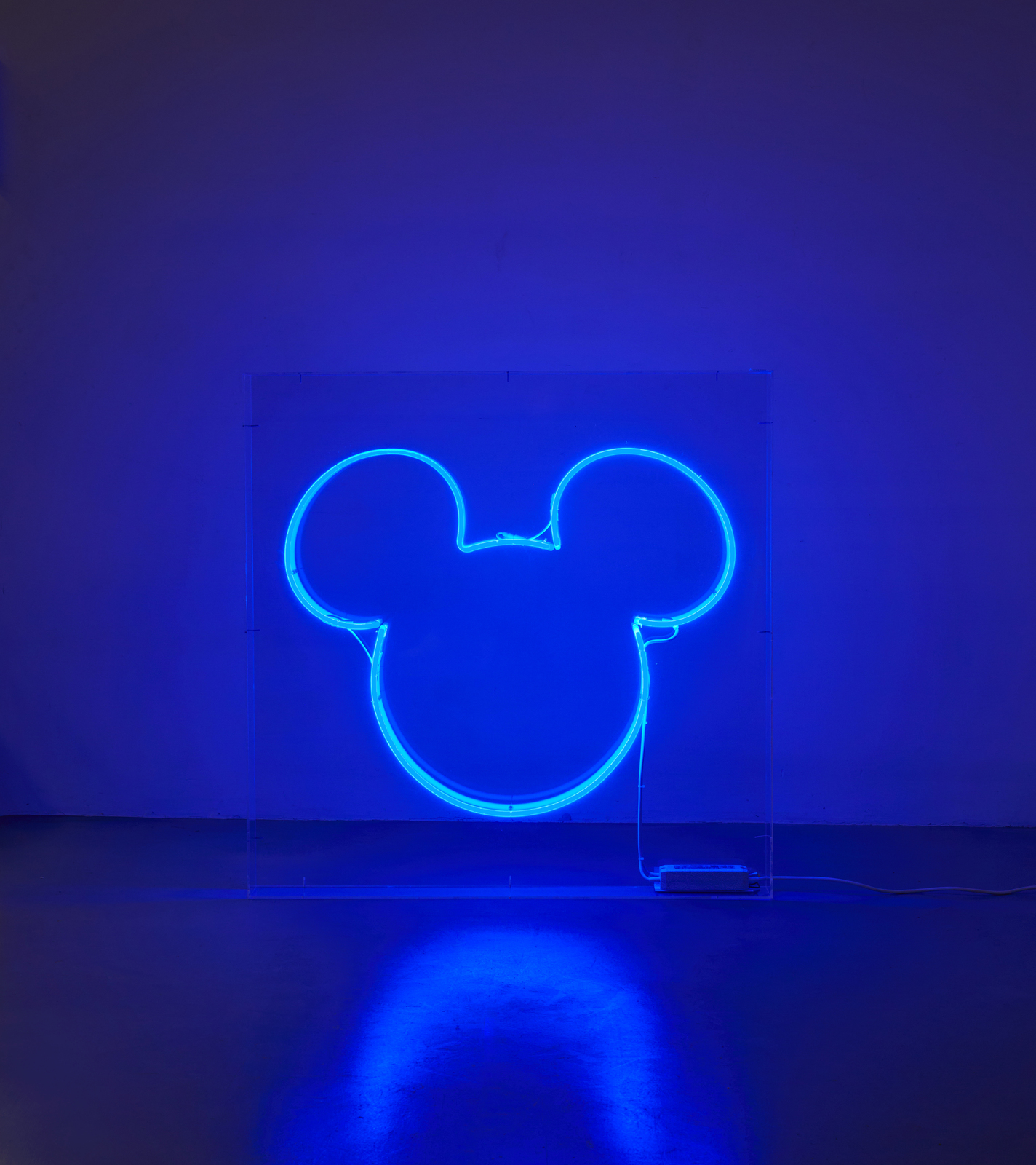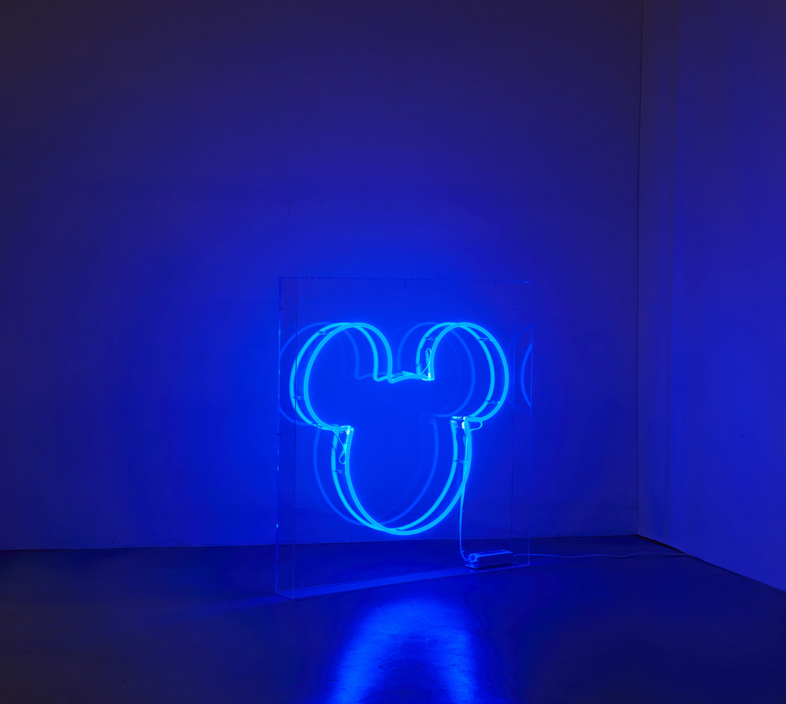 SAVIOLI ROBERTO (n. 1962) Un topo blu. 2021. installazione luminosa. Cm 100,00 x 100,00 x 10,00. Autentica dell'artista su fotografia. Entro teca in plexiglass.