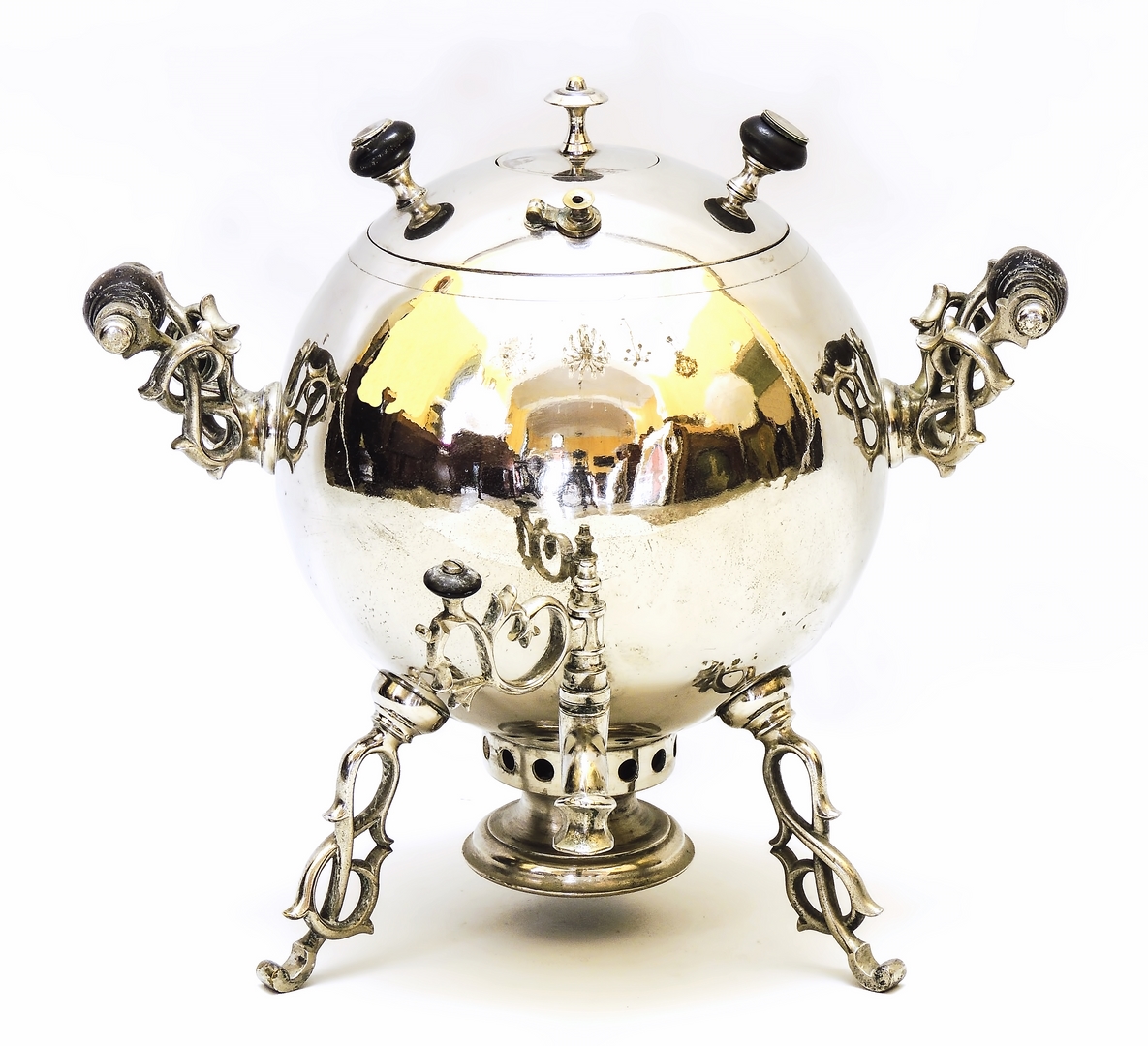 SAMOVAR IN METALLO ARGENTATO - SILVER-PLATED SAMOVAR manici in legno...